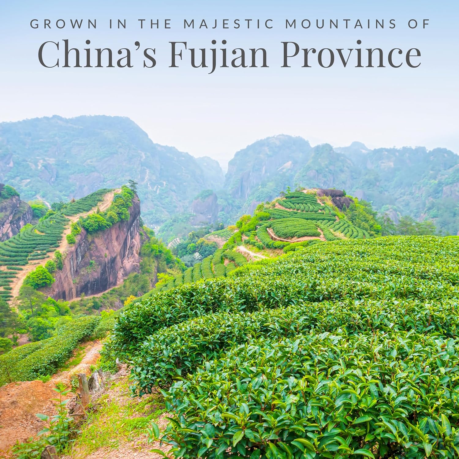 - 100% China White Tea: Authentic 100% White Tea only grows in the majestic mountains of China’s Fujian Province. With small yields and high demands, it remains one of the world’s most rare teas.