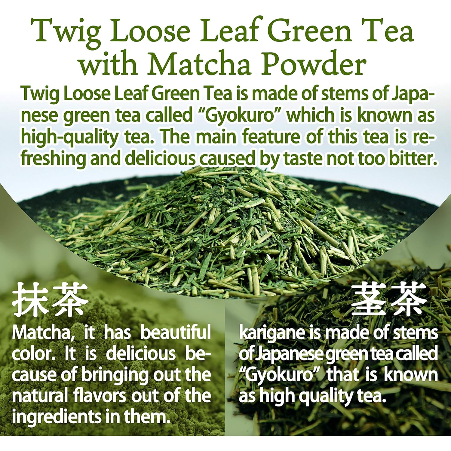 chaganju Organic Green Tea, Kukicha Twig tea with Matcha Green Tea Powder, Japanese Tea -KARIGANE- 100g Bag【YAMASAN】
