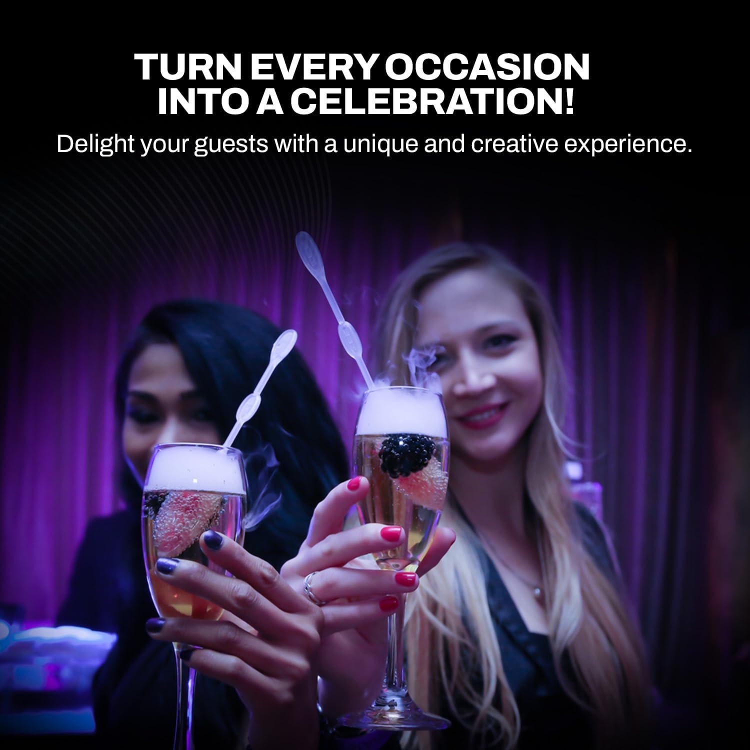- GLOW IN THE DARK SMOKY DRINKS: Make your event unforgettable with our swizzle sticks to add a glowing, dramatic effect to any beverage; These stirrers create a mesmerizing smoky effect when used with food-grade dry ice pellets, dry ice not included