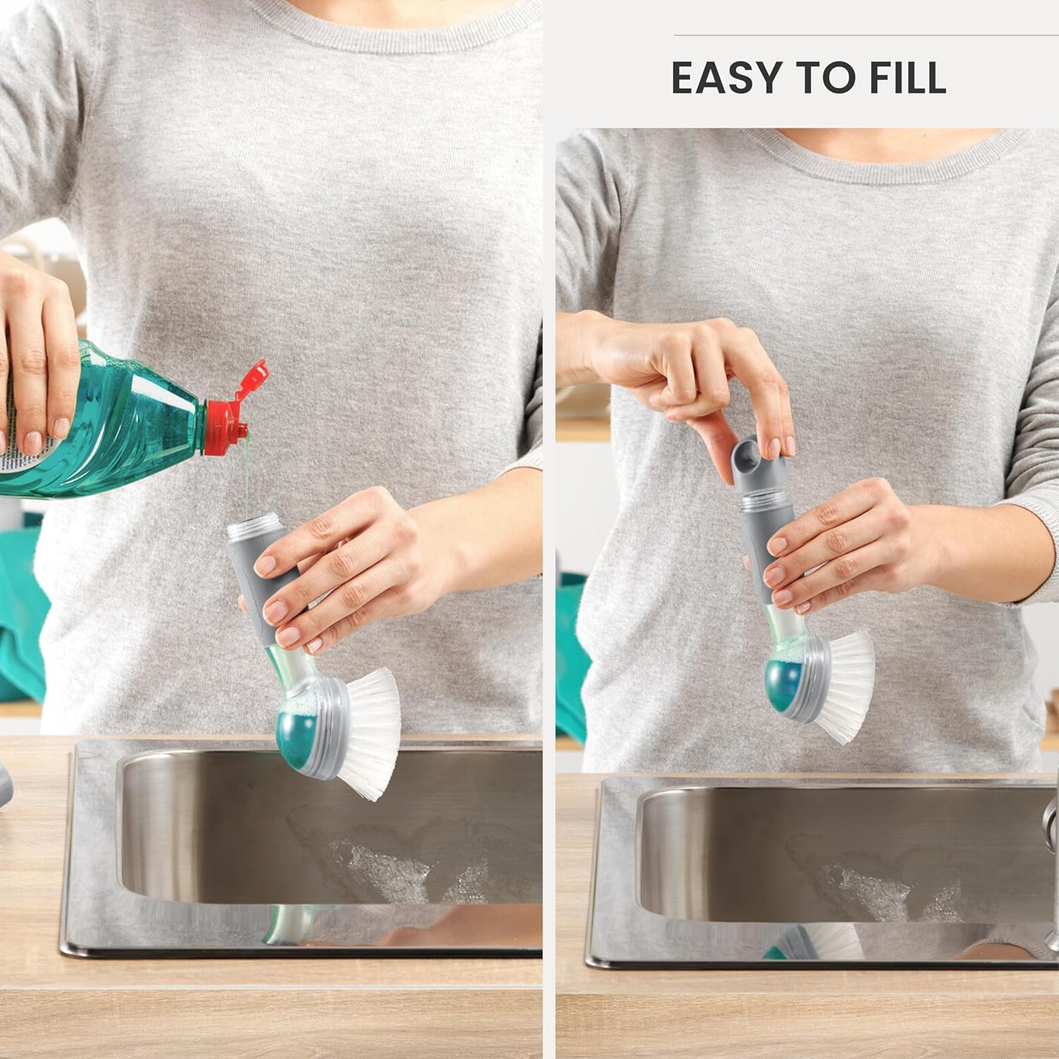 - Multipurpose Dish Brush: Ideal dish brush with handle and built-in soap dispenser for easy kitchen cleaning. Keeps things hygienic and accessible, dispensing soap directly onto surfaces, no need to manually add soap, saving time and effort.