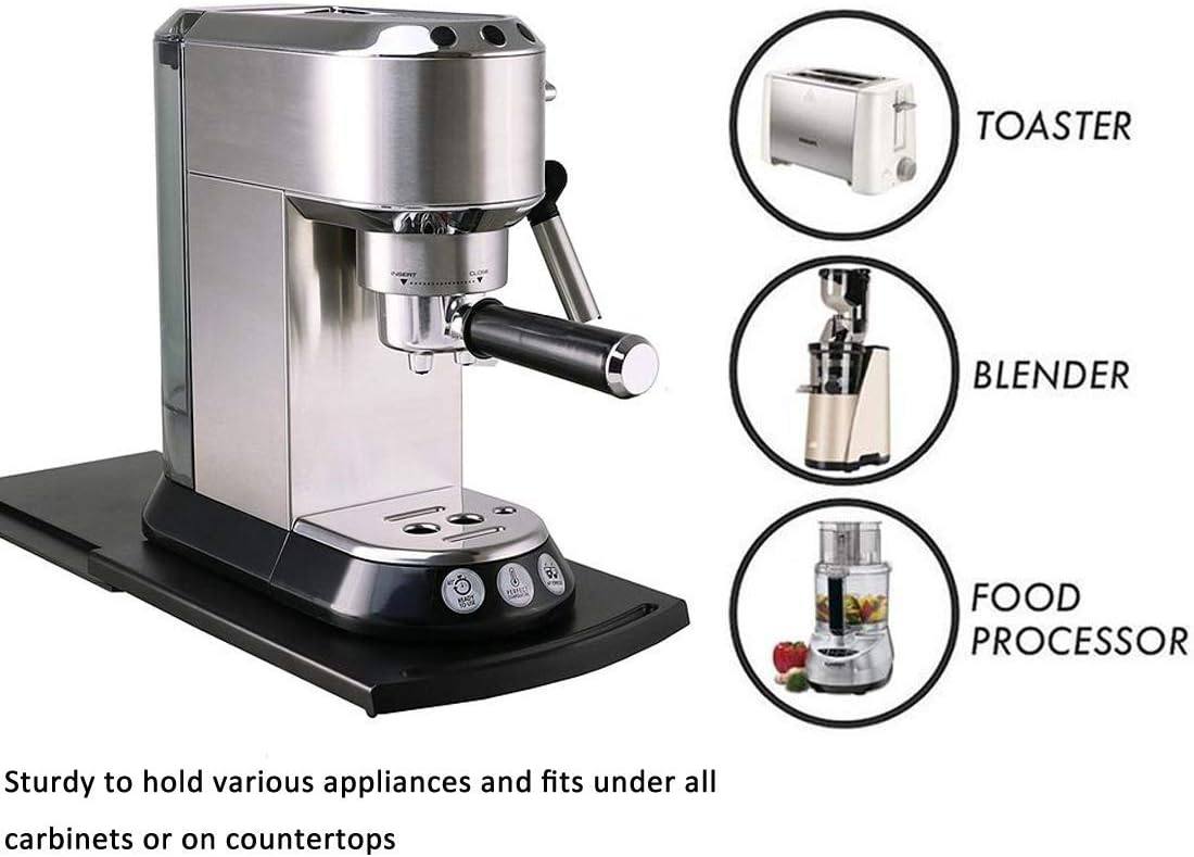 - ☛【VERSATILE SLIDING TRAY】: Our coffee pot sliding shelf is perfect for coffee maker, Air fryer,blender, food processor,toaster, stand mixer and other countertop kitchen appliances.