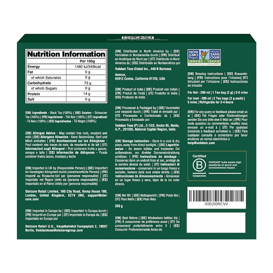 VAHDAM, English Breakfast Black Tea Bags (100 Count) High Caffeine | Strong, Robust & Flavoury | Pyramid Tea Bags | Full Bodied Black Tea Leaves