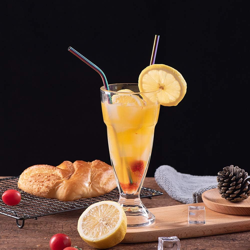 - FIT FOR ALL SIZE TUMBLERS: straight rainbow stainless steel straws of 8.5” and bent rainbow stainless steel straws of 10.5”for 20oz tumblers tumblers. Perfect for you to enjoy your cold bevarage, sipping cocktail, coffee, ice tea, cappuccino etc by these colorful metal straws.
