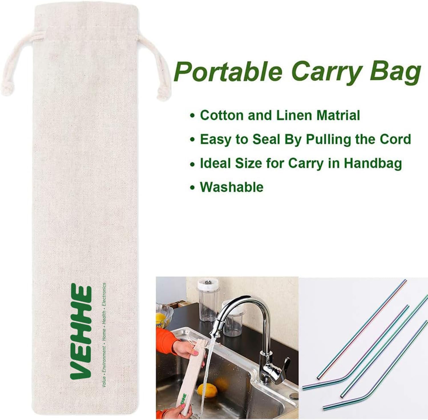 - PORTABLE BAG & MULTI - FUNCTIONAL: Modern and sleek design, with the Cotton and Linen Material bag, this drinking stainless steel straws is easy to carry by your handbag and it is easy to seal by pulling the cord. These colored metal straws look equally beautiful in a cocktail or a smoothie, which add fun to any party, trendy for family reunion, girls night out,cocktail party, picnics, boating and so on.