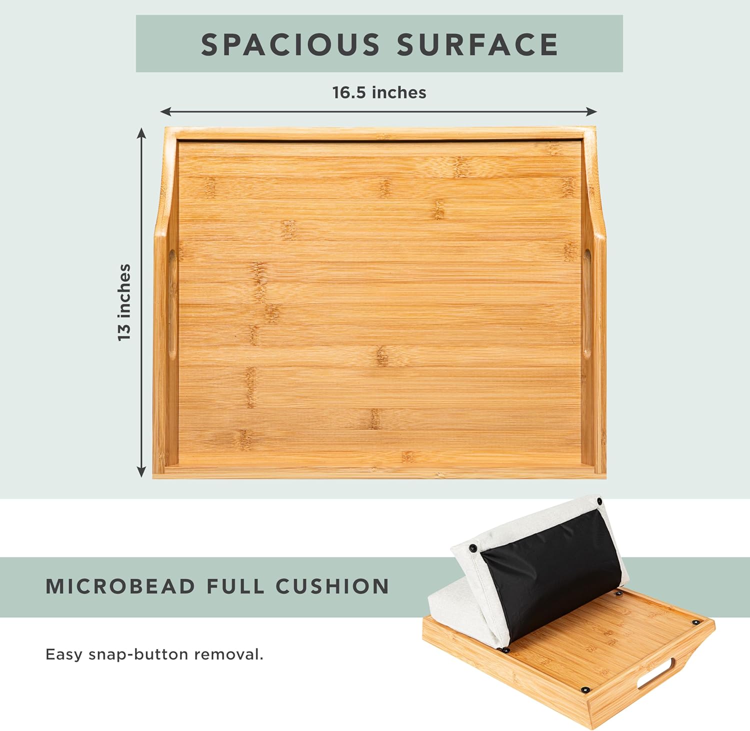 - Dual-Use Design: Use it as a lap desk with the cushion attached, or remove the cushion to convert it into a serving tray.