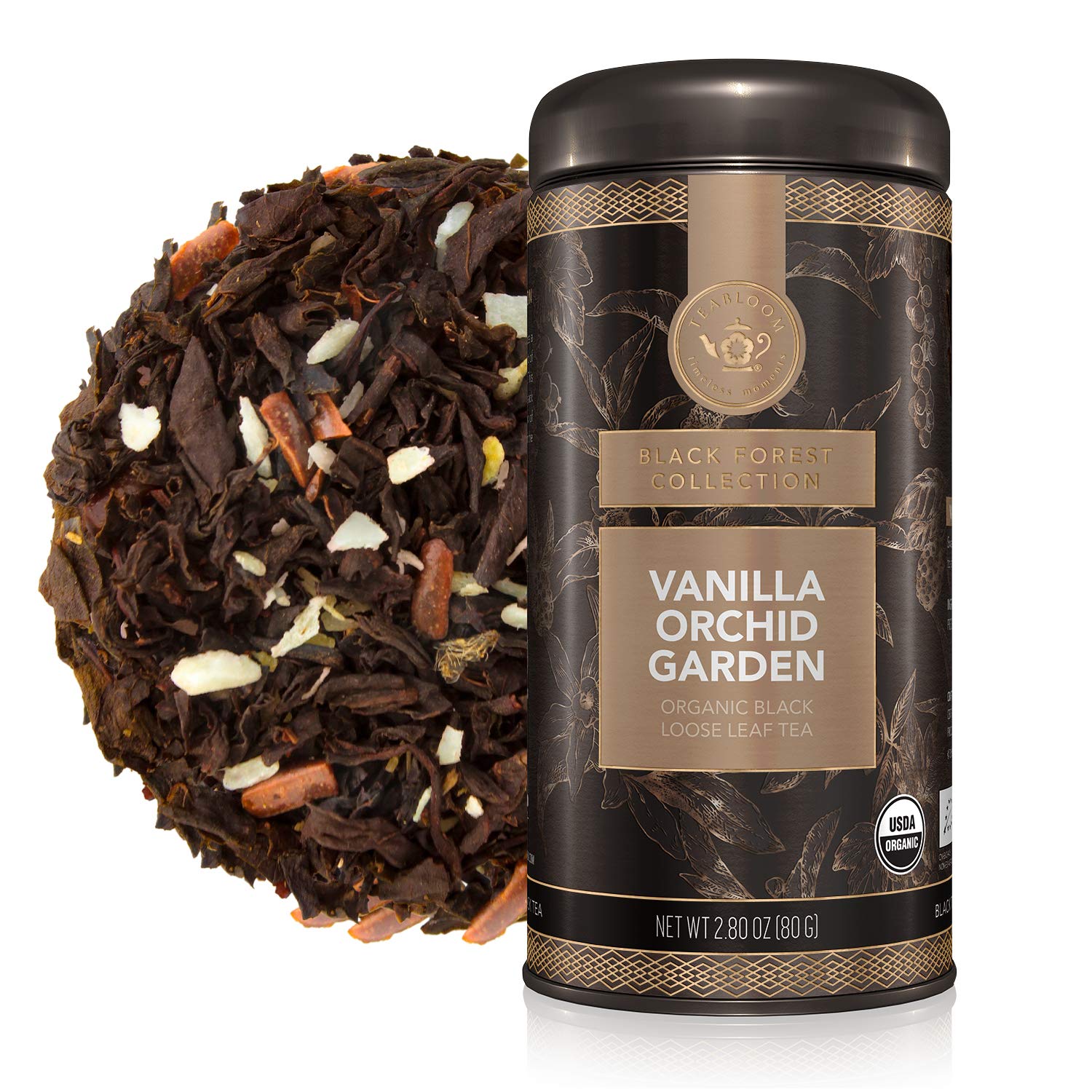 Teabloom Organic Black Tea, Vanilla Orchid Garden Loose Leaf Tea, USDA Certified Organic and Kosher Certified, 2.80 Ounce Canister Makes 35-50 Cups