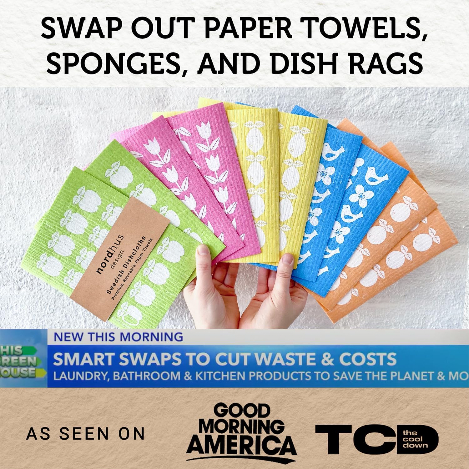 Nordhus Design Swedish Dishcloths,10 Cloths, Made in Sweden - Reusable, Washable Cellulose Cotton Kitchen Cloths - Replace Paper Towels, Wipes, Sponges, Dish Rags