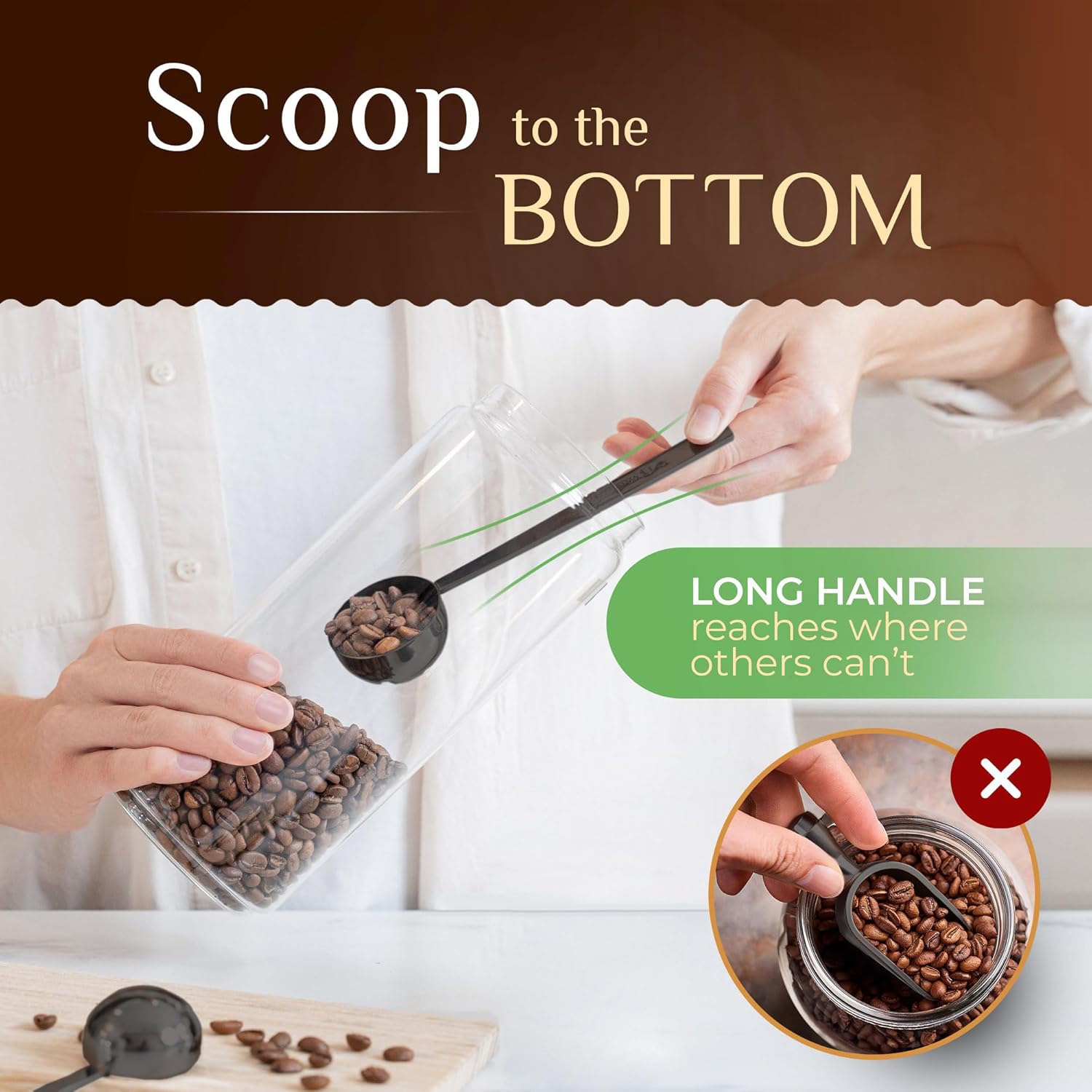 - PERFECT FOR DEEP CONTAINERS - Our coffee scooper has a long handle, allowing you to scoop out the remaining powder at the bottom of your tall jars without making a huge mess on your counters.