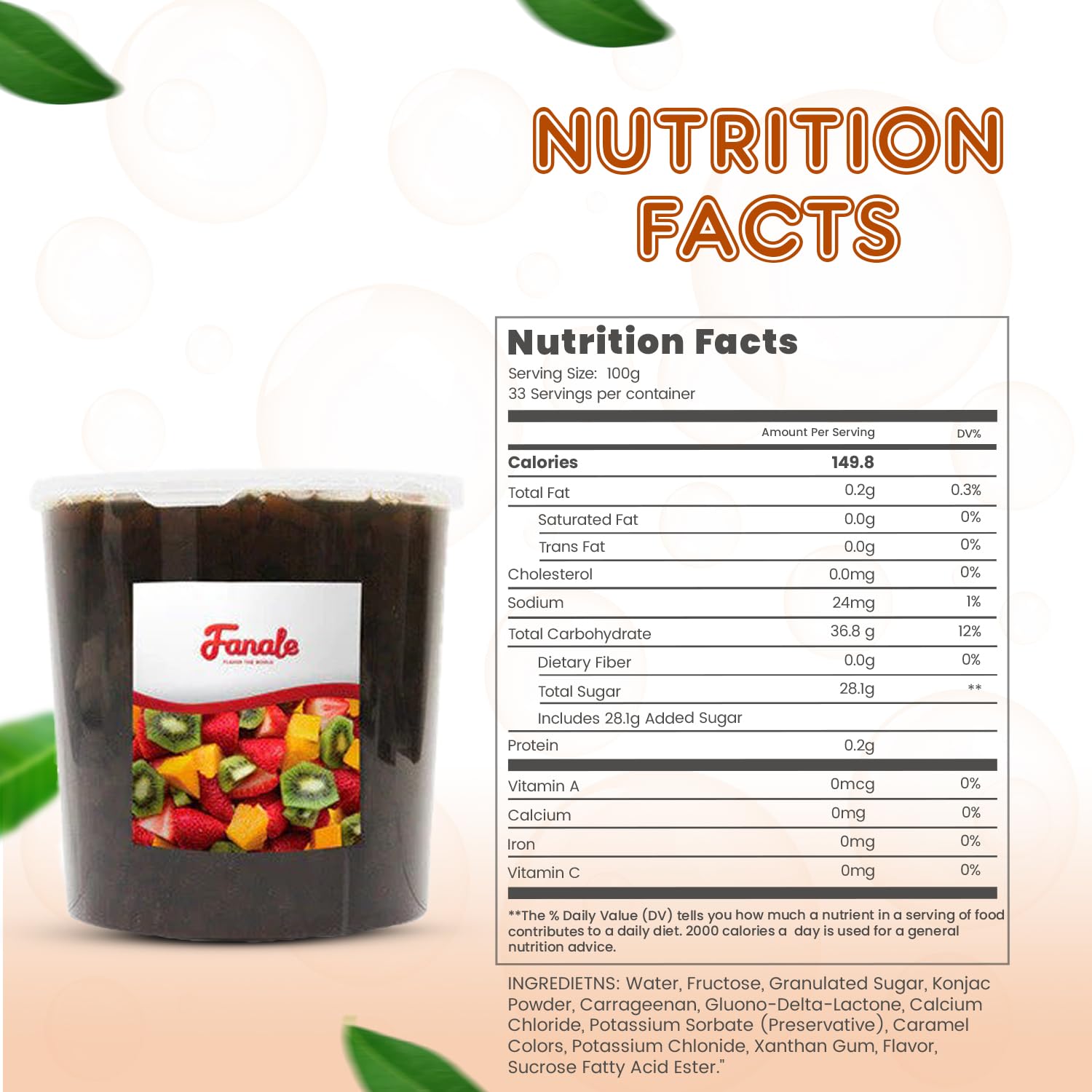 - ๐๐๐ซ๐ฌ๐๐ญ๐ข๐ฅ๐ ๐๐ฌ๐: This boba tea jelly topping can be used in desserts like puddings, cakes, or tropical-themed pastries. It is also suitable for cocktails or mocktails, adding a unique texture and flavor to beverages and allowing chefs to experiment by using it as a base for creating innovative recipes. ๐ ๐จ๐ซ ๐ฒ๐จ๐ฎ๐ซ ๐ฉ๐๐๐๐ ๐จ๐ ๐ฆ๐ข๐ง๐, ๐ญ๐ก๐ ๐ฉ๐ซ๐จ๐๐ฎ๐๐ญโ๐ฌ ๐๐ฑ๐ฉ๐ข๐ซ๐๐ญ๐ข๐จ๐ง ๐๐๐ญ๐ ๐ข๐ฌ ๐๐ฅ๐๐๐ซ๐ฅ๐ฒ ๐ฉ๐ซ๐ข๐ง๐ญ๐๐ ๐จ๐ง ๐ญ๐ก๐ ๐๐๐๐ค ๐จ๐ ๐ญ๐ก๐ ๐ฉ๐๐๐ค๐๐ ๐ข๐ง๐ , ๐๐ง๐ฌ๐ฎ๐ซ๐ข๐ง๐ ๐๐ซ๐๐ฌ๐ก๐ง๐๐ฌ๐ฌ ๐๐ง๐ ๐ช๐ฎ๐๐ฅ๐ข๐ญ๐ฒ.