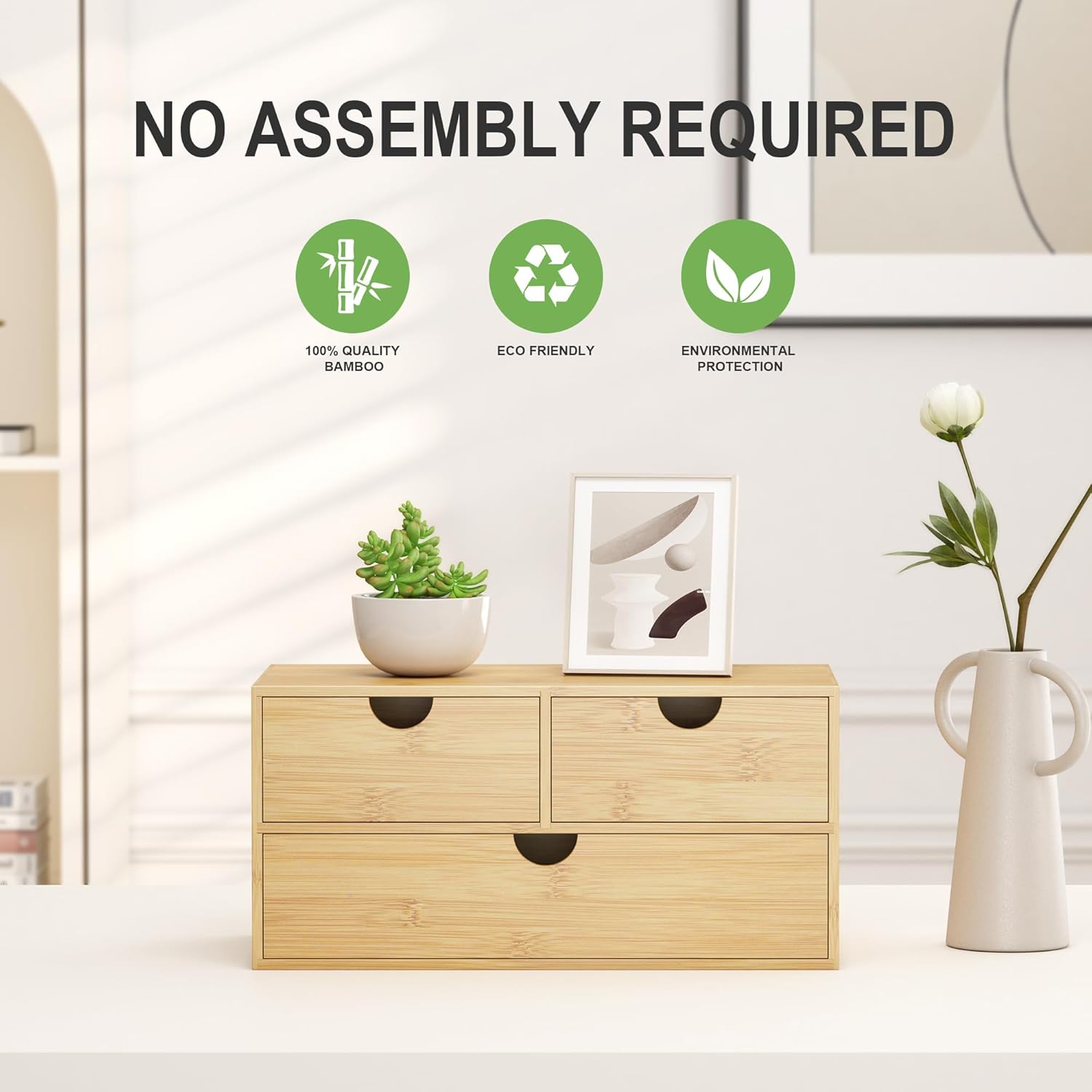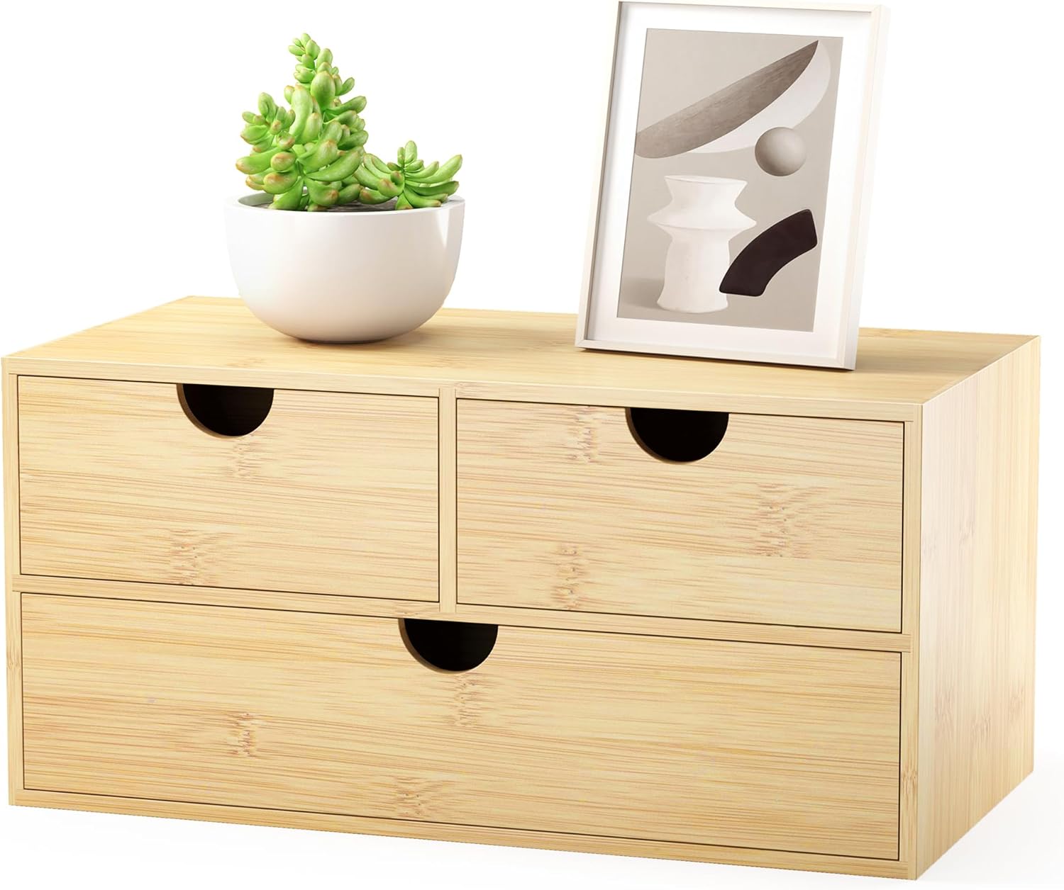 - 【Item Size】7.48” x 12.99” x 6.3” (D * W * H). This bamboo desktop organizer with drawers can not only keep your desk clean, but also be used as a decoration to make your work environment look more comfortable