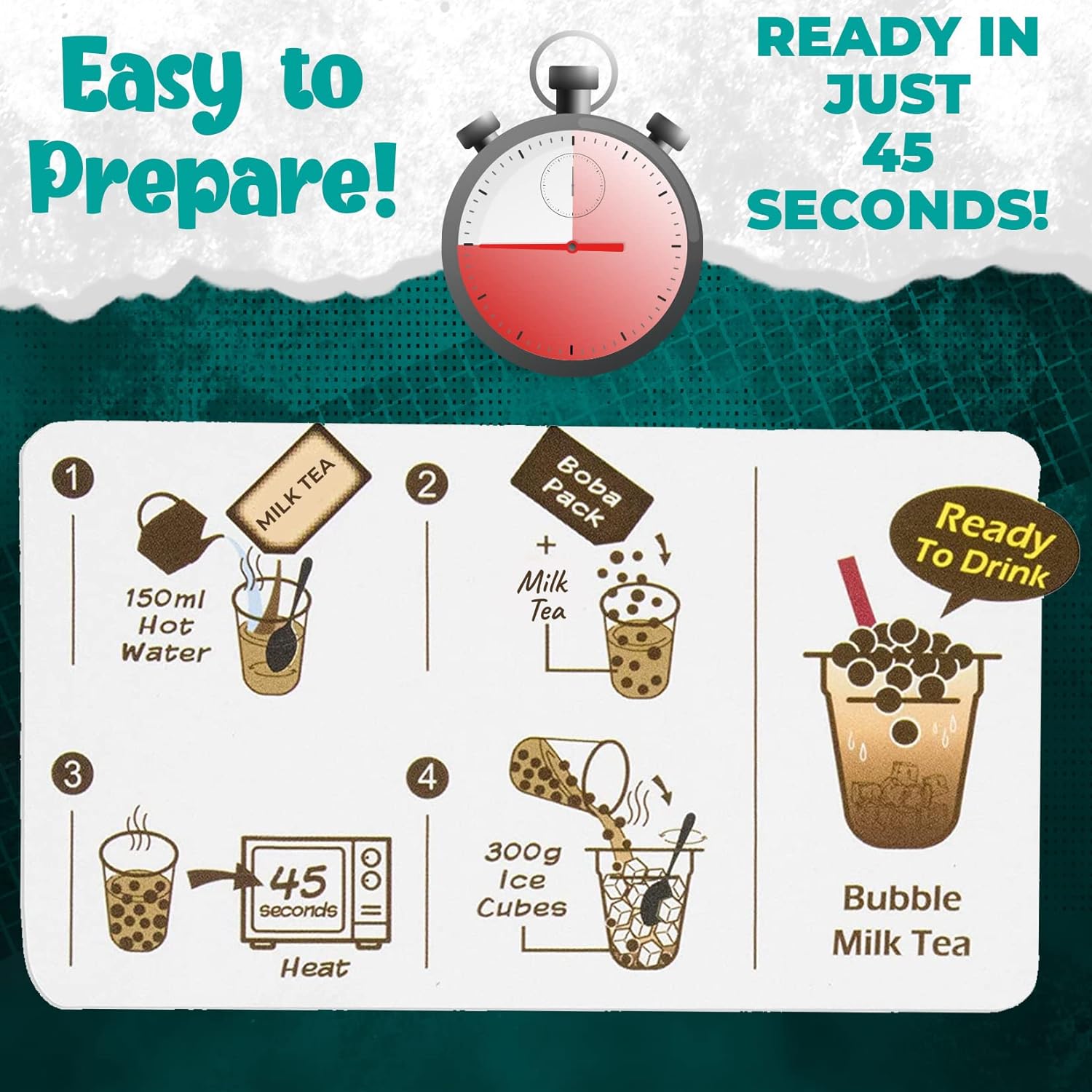 - ✅ READY IN 45 SECONDS - Get your milk tea fix in less than one minute with our creamy instant boba milk tea that's ready to drink in 45 seconds. You no longer need to go out to enjoy your favorite drink!