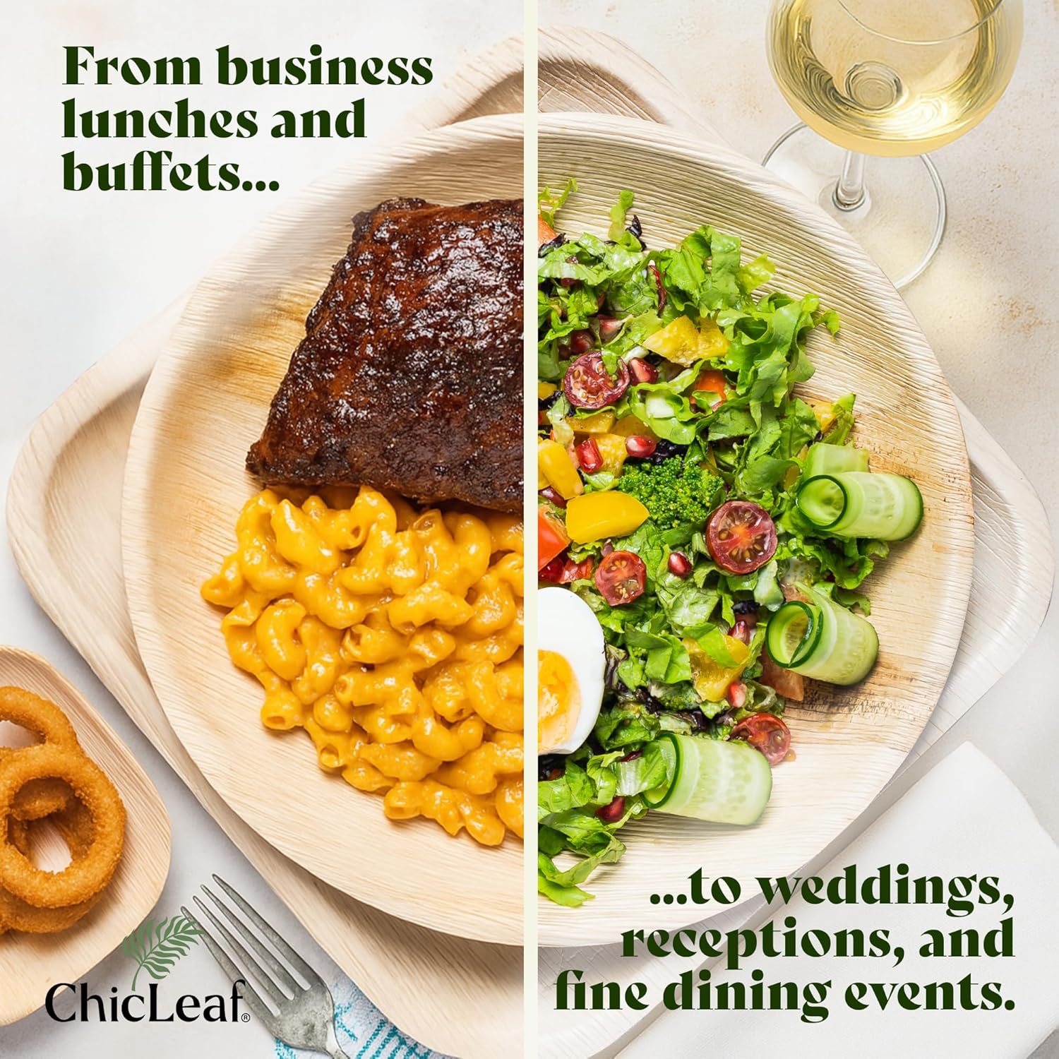 - Eco-Friendly Dining: Chic Leaf palm leaf plates offer a bamboo-like elegance that enhances any event with their natural wood-inspired design. Crafted from fallen palm leaves, these biodegradable plates serve as an exquisite alternative to conventional disposable plates