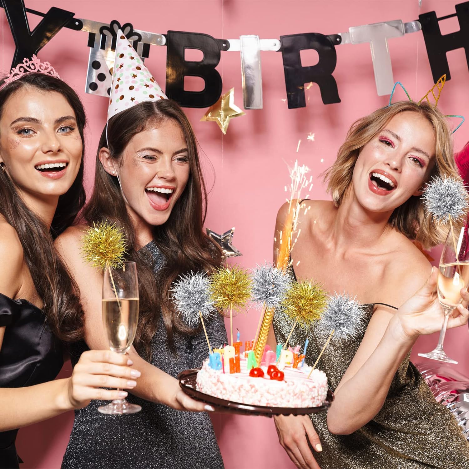 Chinco 100 Pcs Foil Firework Cupcake Toppers Sparkle Tinsel Cake Toppers Cake Decoration Cocktail Fruit Toothpick for Birthday Wedding Graduation Party(Gold, Silver)