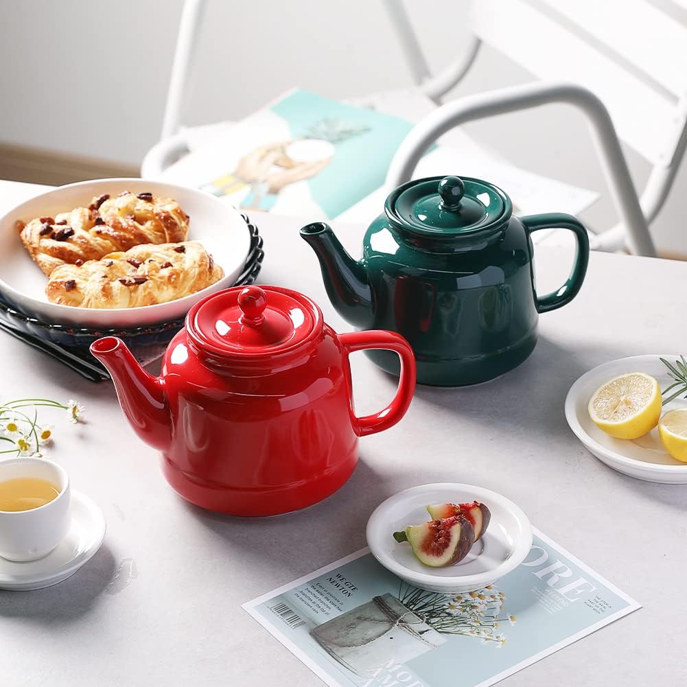Sweejar 35 oz Porcelain Tea Pot, Teapot with Removable 18/8 Stainless Steel Infuser, Microwave & Dishwasher Safe Tea Maker, Tea Infuser Pots for Blooming loose Leaf Tea,Women Chrismas Women Gift (Red)