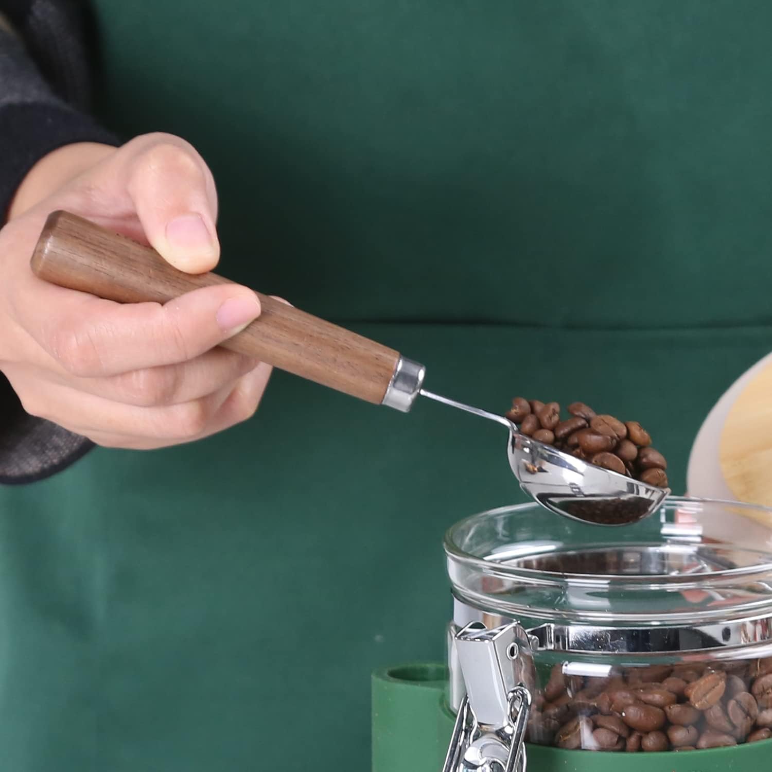 KKC HOME ACCENTS Coffee Scoop Wood Handle for Ground Coffee,Tea Scoop for Loose Leaf Tea,Wooden Long Handle 1 Tablespoon for Coffee Beans,Loose Tea Bulk, Silver, 1 tbsp, 6.7 inch