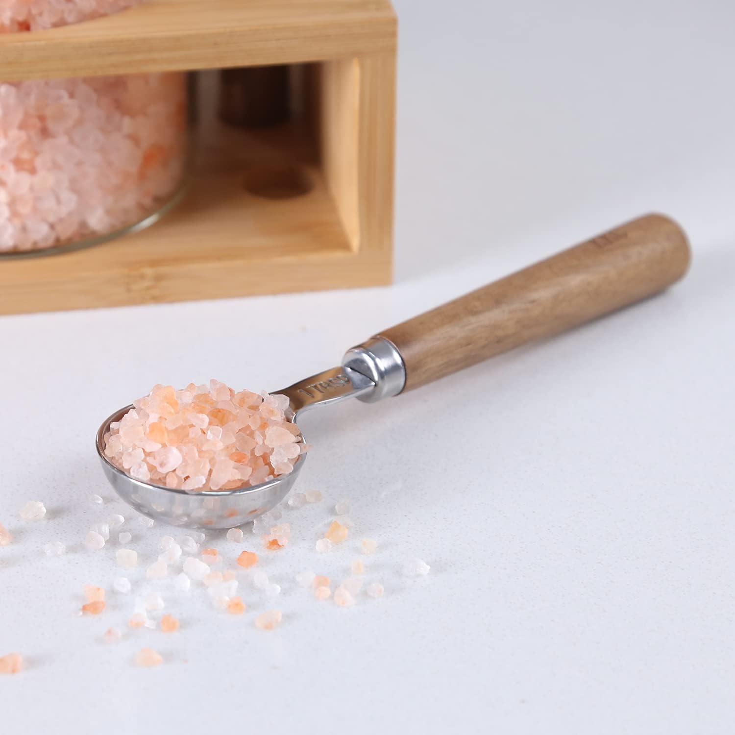 - 【MULTI-FUNCTION】:This stainless steel measuring spoons with solid wood handle is very suitable for measuring spices, sugar, salt, oil, coffee, wheat, etc., making your cooking and baking more relaxed and interesting