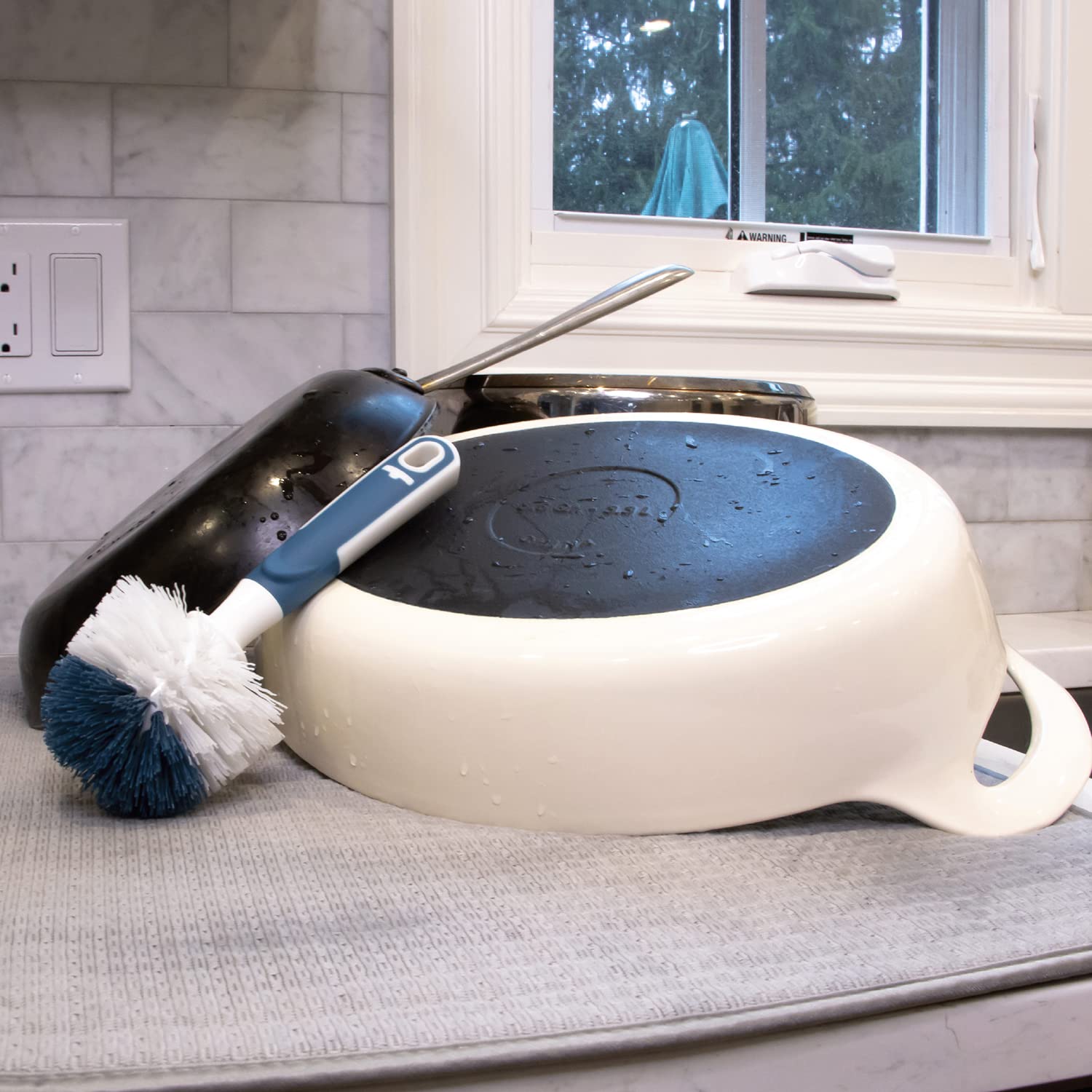 - Durable Non-Scratch Bristles: The brush bristles clean effectively and thoroughly without scratching or scuffing your pots, pans, or delicate glassware