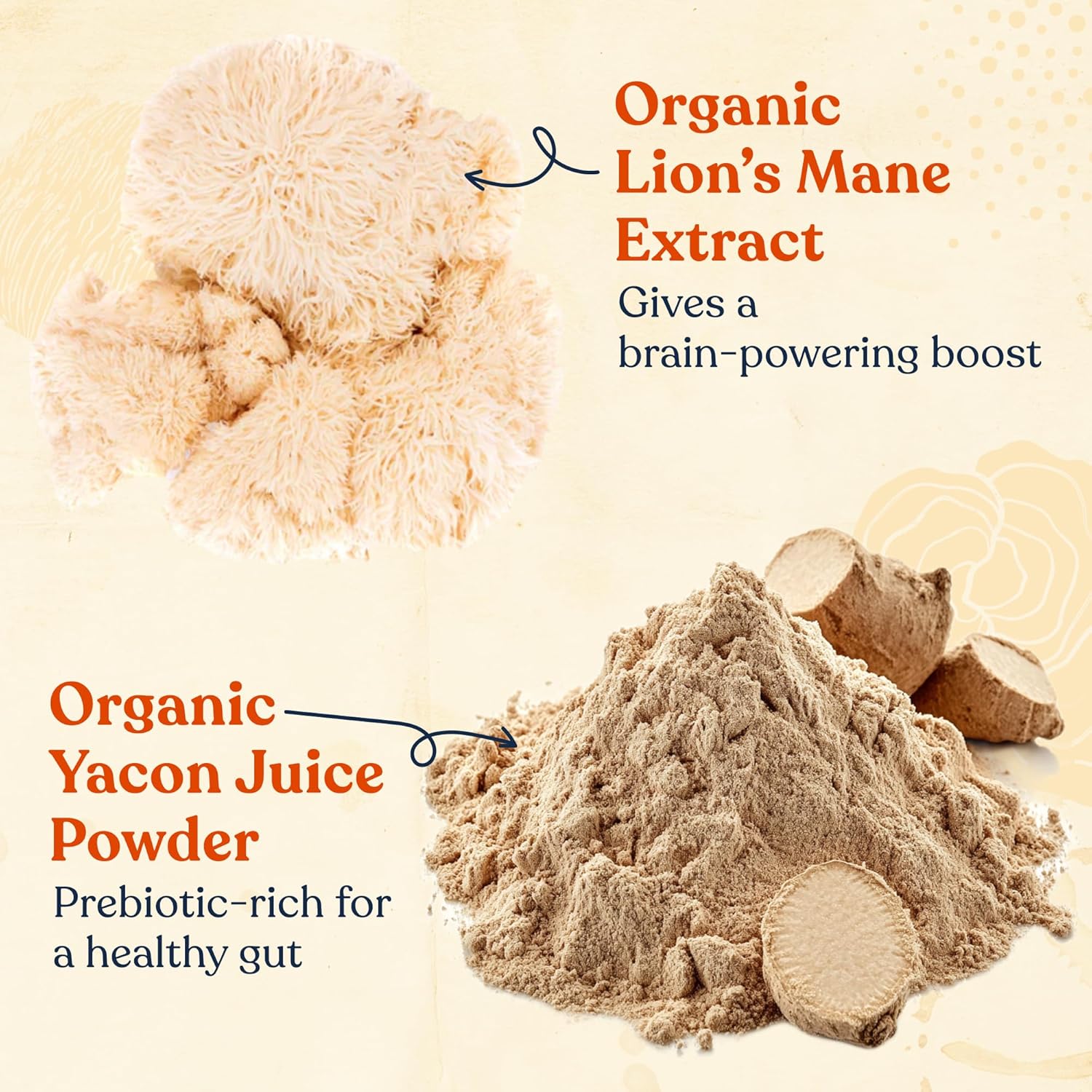 - SMOOTH AND NUTRIENT-DENSE ORGANIC COLD BREW COFFEE INFUSED WITH SUPERFOODS — Enjoy a delicious and full-bodied cold coffee without the bitter aftertaste, infused with some of the world's most nutrient-dense ingredients. Our unique blend of superfoods, including immunity-boosting and attention-amplifying Lion's Mane mushroom & Yacon Powder, creates an astoundingly effective and flavorful beverage.