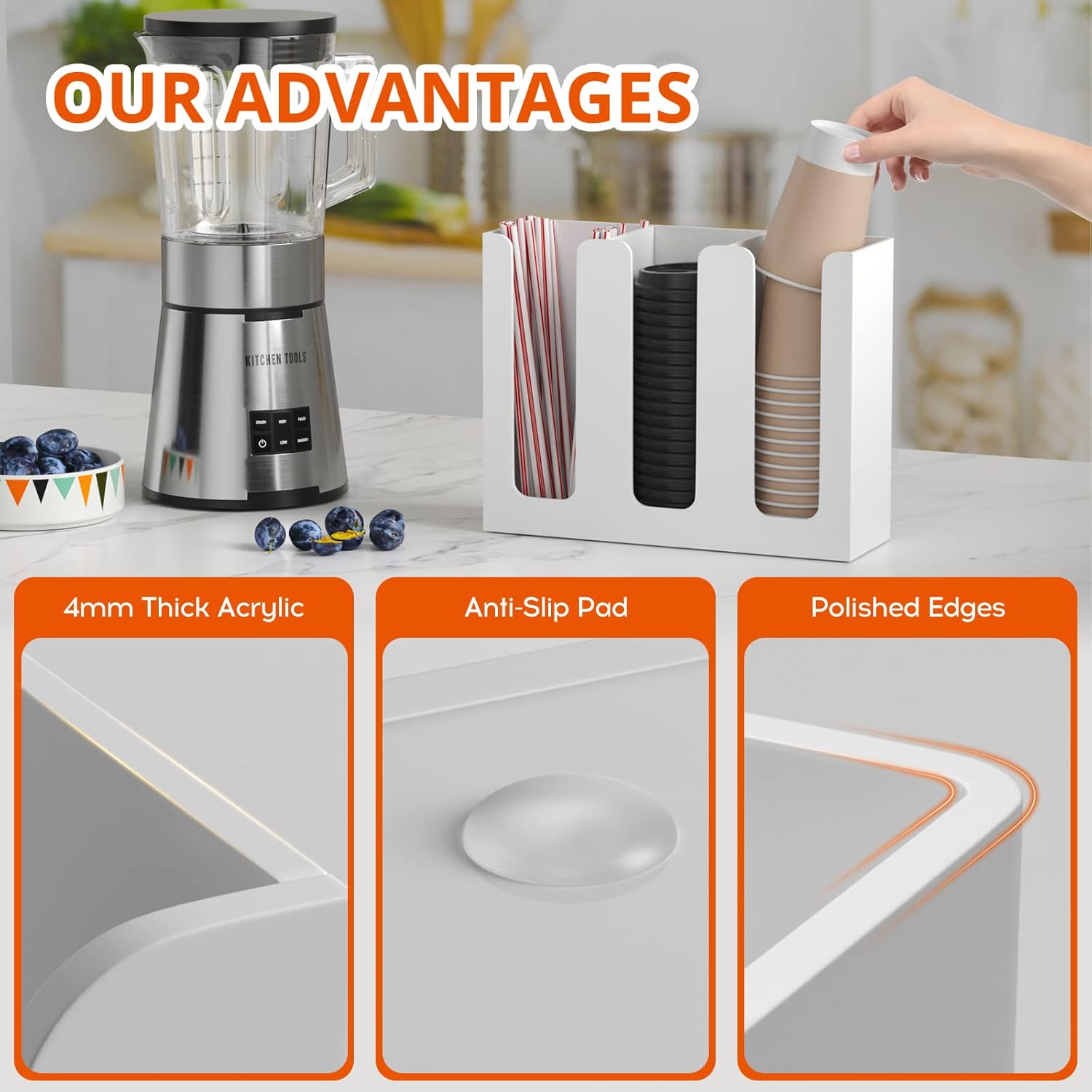 - Premium Quality - made of 0.15"(4mm) thick acrylic, all the sides are polished and corners are rounded, better protect your fingers from getting nicked when taking out the disposable paper cups and lids, heavy and sturdy, modern and elegant to use with any decors.