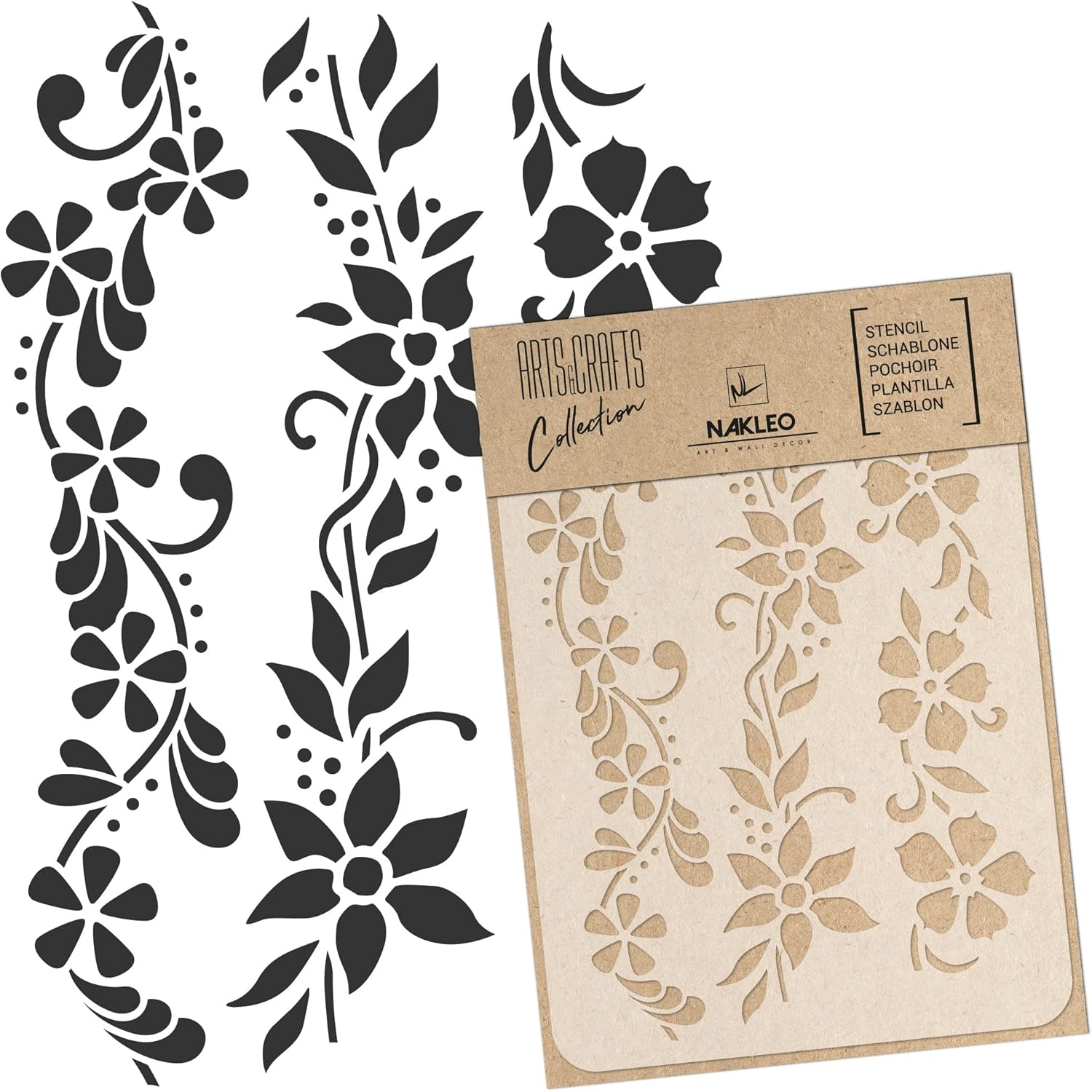 NAKLEO Painting Stencil for Crafts A4 8.3” x 11.8”, Flowers Mini Border Pattern, Reusable Plastic DIY & Scrapbooking Drawing Template, Decoupage Art Home Decor, Wall Wood Fabric Furniture