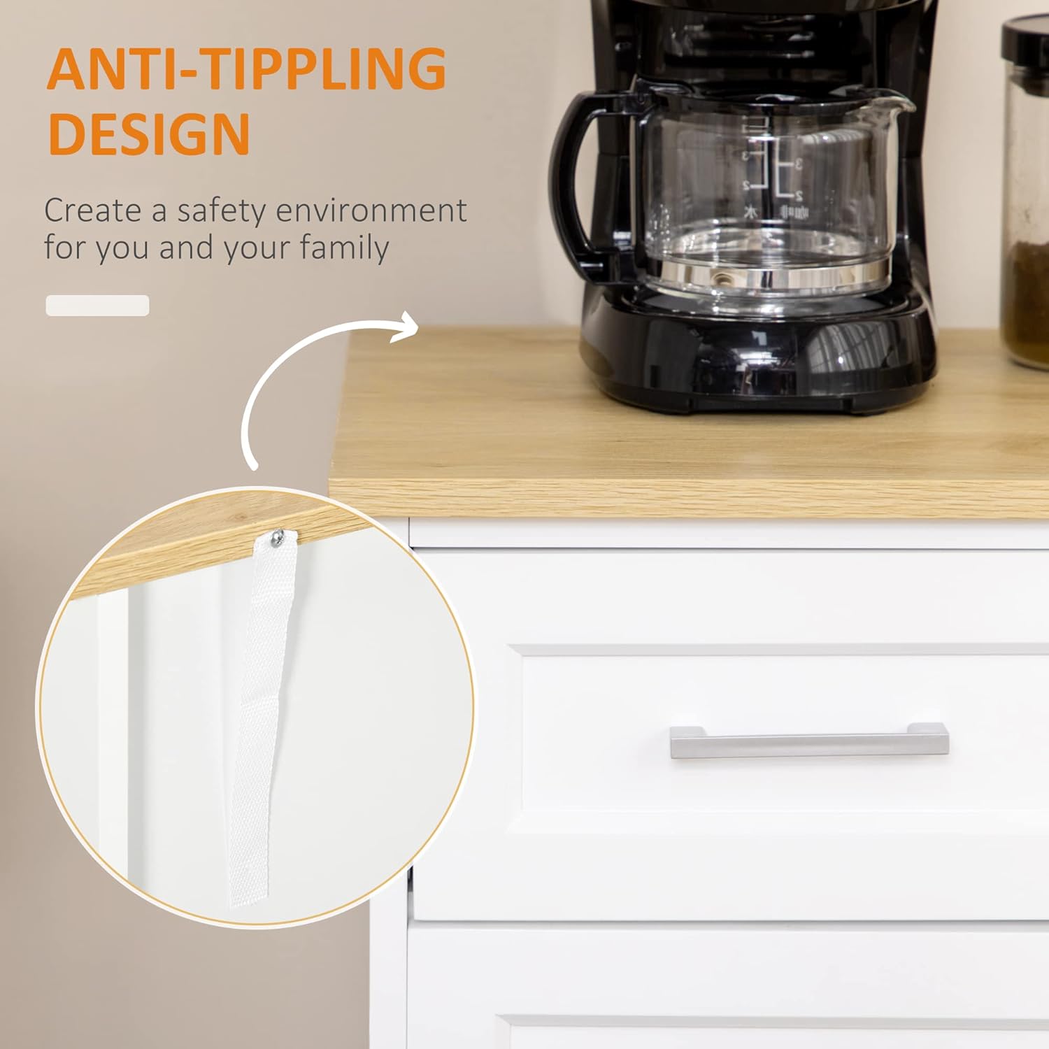 HOMCOM Sideboard Buffet Cabinet with 3 Storage Drawers, Kitchen Cabinet, Coffee Bar, with Adjustable Shelf for Living Room, White
