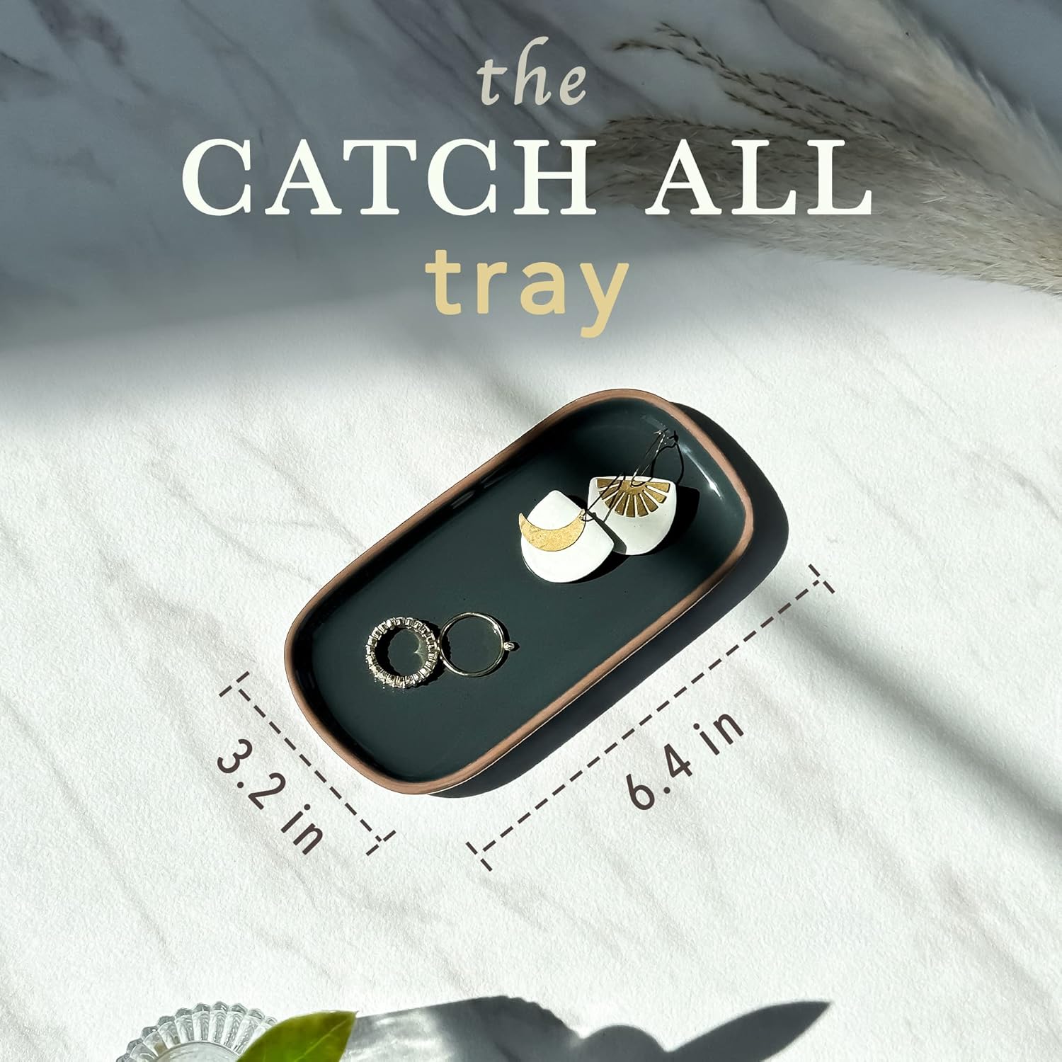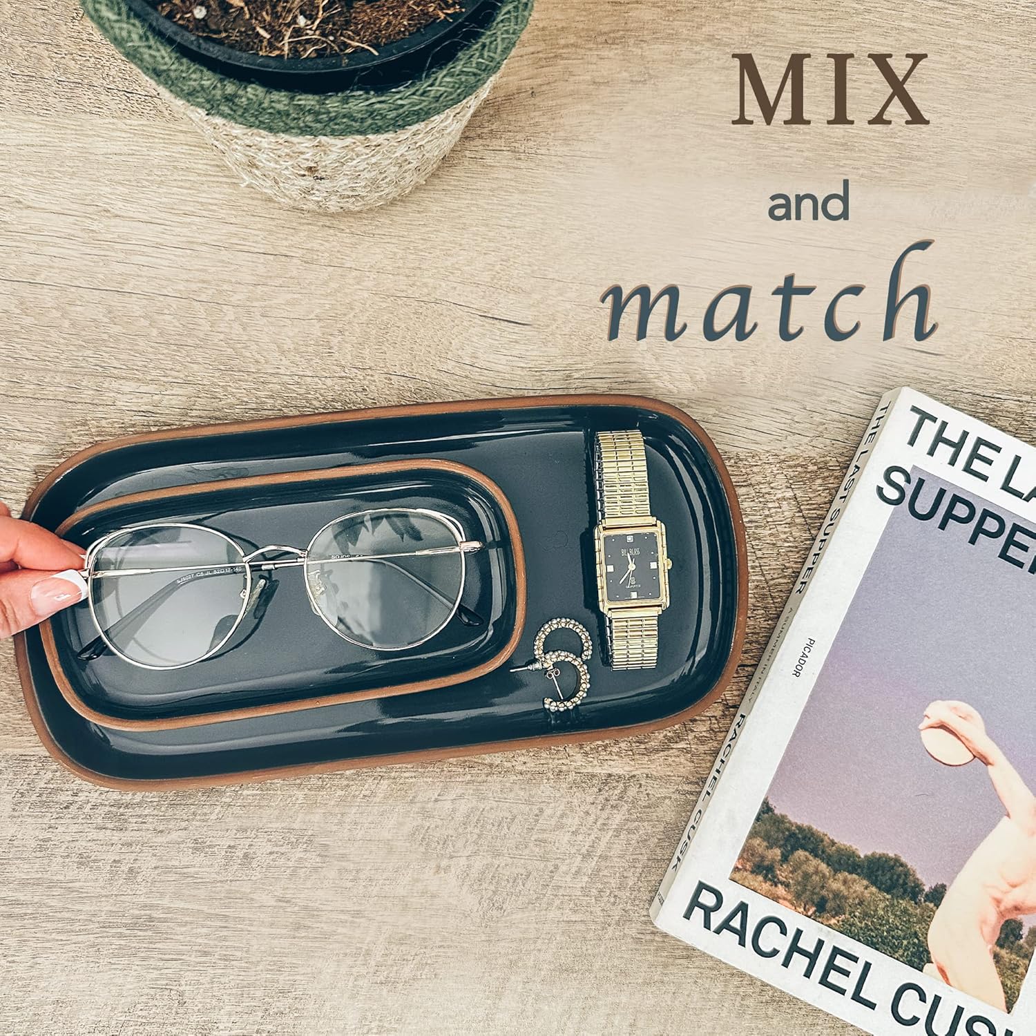 - VERSATILE USES: We all love a multi-functional object. Trays are all the rage right now and with good reason. Storing things on a tray gives a minimal and organized aesthetic and can be used for an endless amount of things. Your stationary, soap dispensers, brushes, candles, cosmetics, jewelry etc all deserve a beautiful home. The glaze is also food grade and work great for serving cheese, sushi, mini cakes, etc.