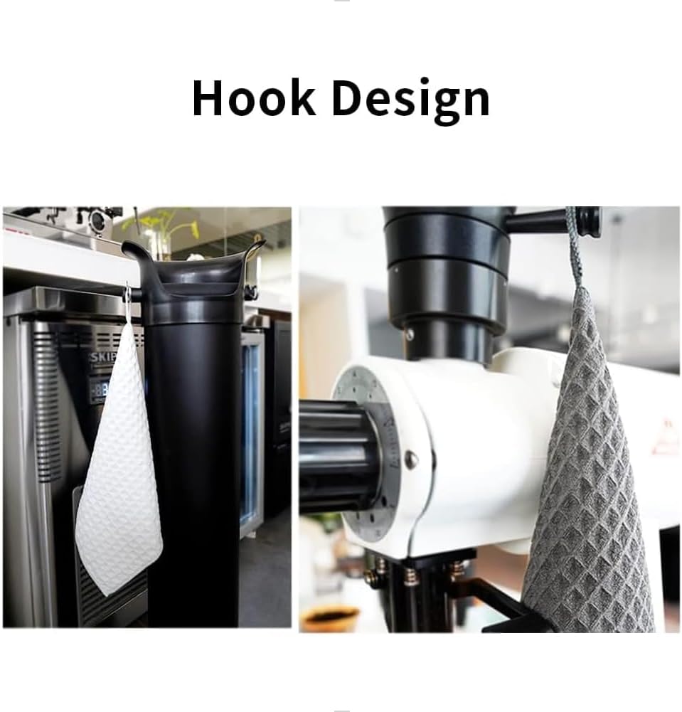 - ☕ 【BARISTA TOWEL WITH HOOK】Hook design cleaning towel is convenient to hang it on your espresso machines, professional coffee knock box or anywhere in the kitchen.