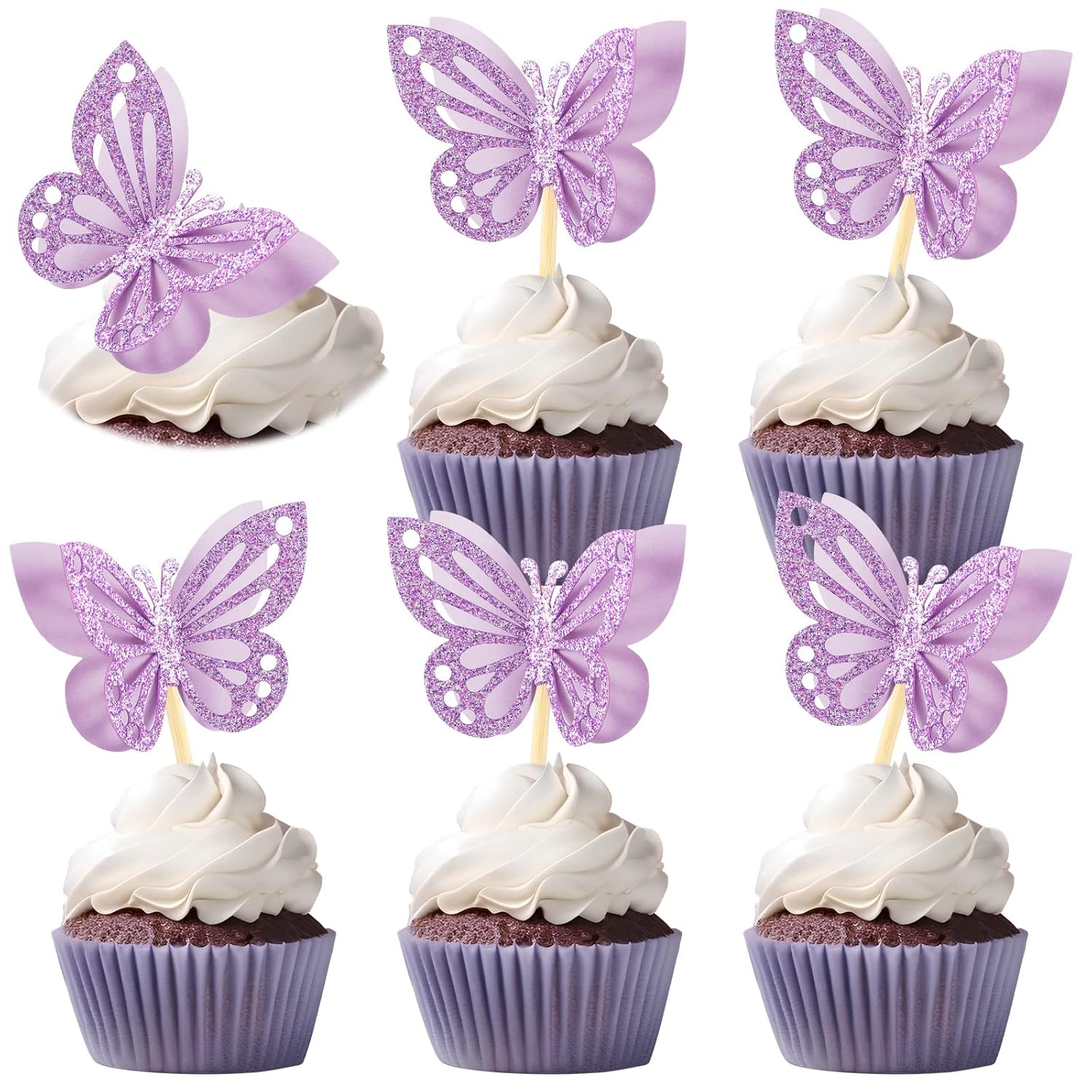 - Cake Decoration Set: you will receive a total of 48 pieces glitter butterfly toppers cupcake picks, designed in the shape of butterflies, each with a size of approx. 2.2 x 1.2 inches, and sufficient quantity can easily meet your party decoration needs