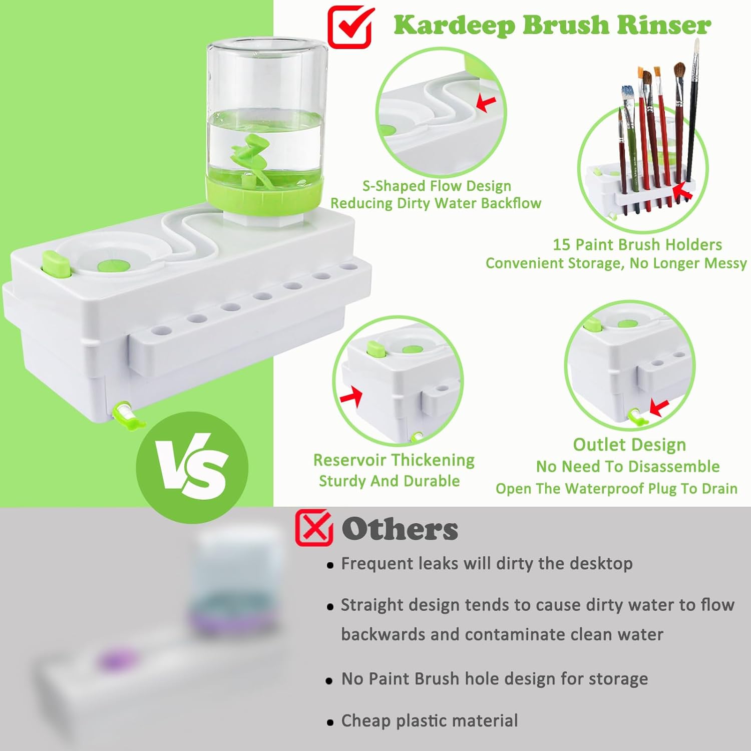 Paint Brush Cleaner, Painting Station with Drain and Brush Holder, Strengthen Water Recycling Brush Rinser, Paint Brush Cleaner Tool for Acrylic, Watercolor and Water-Based Painting Supplies, Green