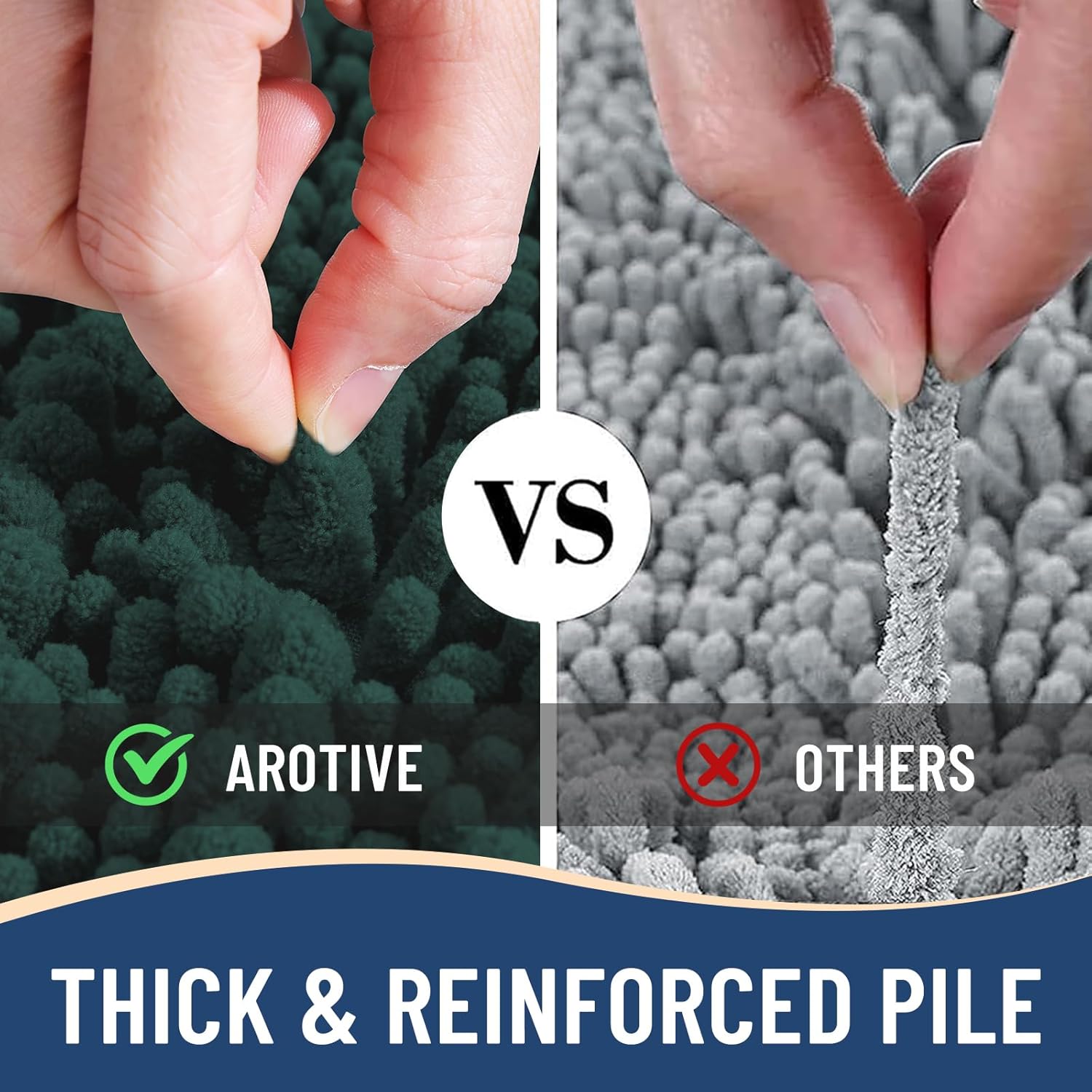 - Anti-Skid Backing: Arotive chenille bathroom rugs feature a non-slip bottom consisting of sturdy mesh PVC material that stops the bath mat from shifting and skidding. The middle layer is 4 mm memory foam, which can let you feel more comfortable when wrapping into the rugs. WARNING: Place bath mat on CLEAN DRY FLAT FLOOR ONLY. Water under bath rug can cause it to slip. Always keep the bottom of bath rug dry