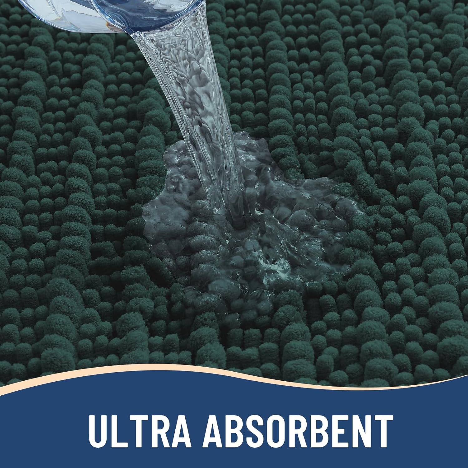 Arotive Luxury Chenille Bathroom Rug Mat, Extra Soft Thick Absorbent Shaggy Bath Rugs, Non-Slip Machine Wash Dry, Plush Bath Mats for Bathroom, Shower and Tub, 30x20, Dark Green