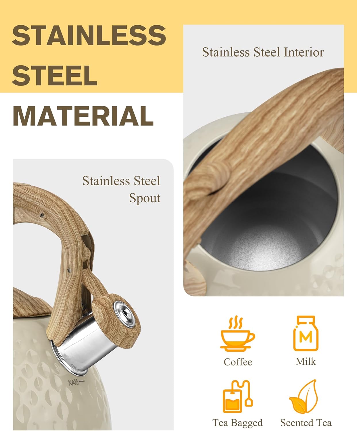 - Large Capacity & Anti-Rust Finish: This Milky White teapot has a capacity of 2.5 quarts, perfect for friends gathering. The main body is made of stainless steel, anti-rust and anti-corrosion, thick stainless steel makes it more resilient and strong