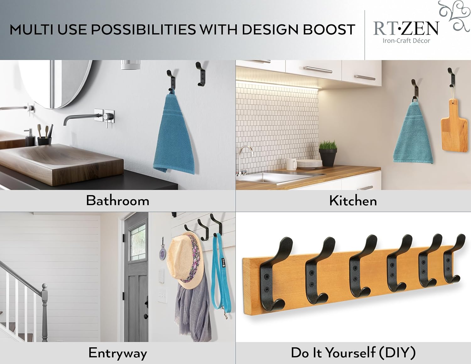 • CLASSIC FARMHOUSE HOOKS - Decorative Hooks for Kitchen, Bathroom, Toilet, Bedroom & Living Room. Hook Rack For Rustic Modern Wall Decor Aesthetic Vintage or Antique Country Design. A Great Gift Idea!