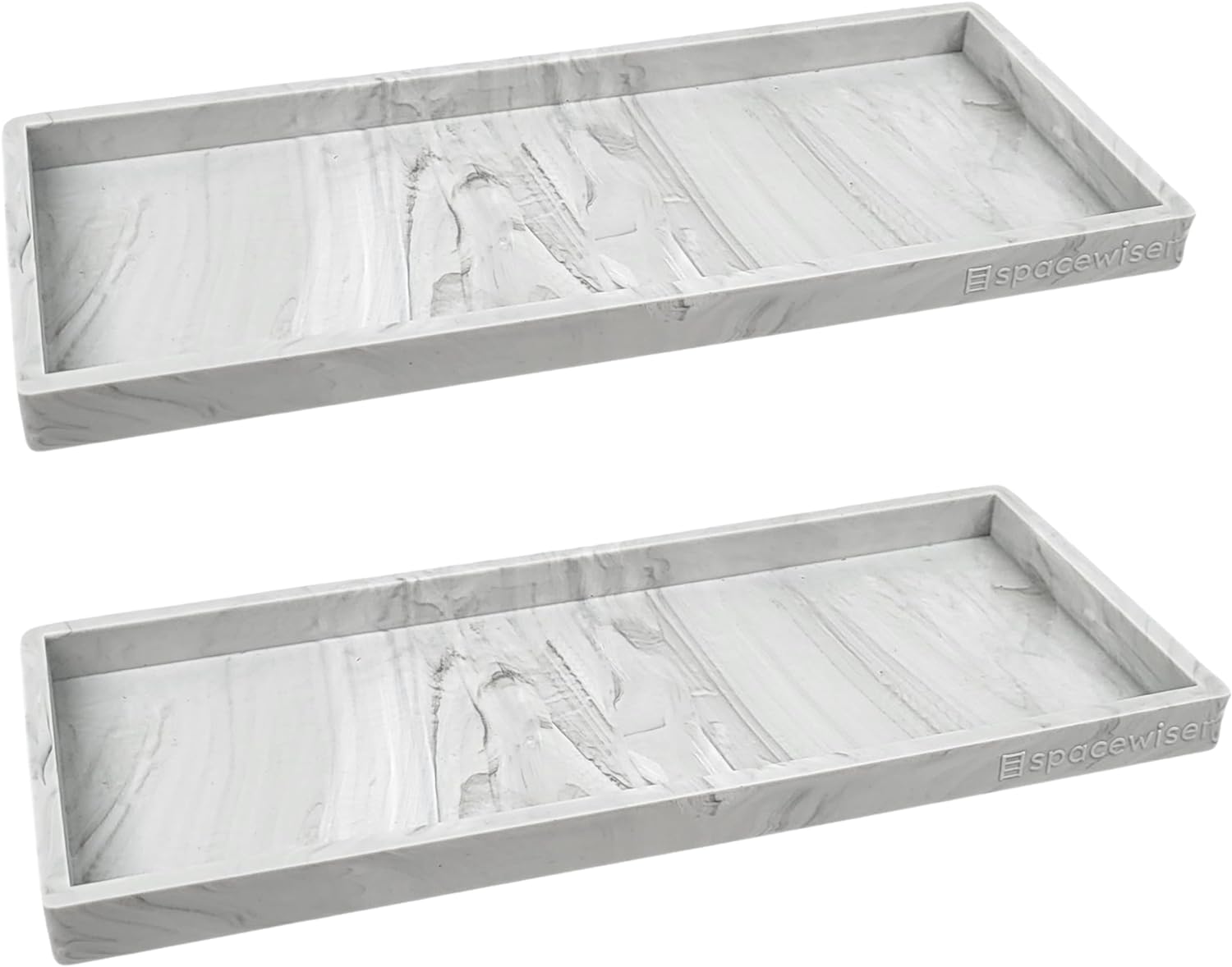 - The Details - Two trays in Marble Design, Sized at 11.7” x 5” and made of flexible but sturdy food grade silicone, these marble trays are the perfect vanity tray, bathroom counter organizer, kitchen sink organizer, or sponge holder for kitchen sink counter areas.