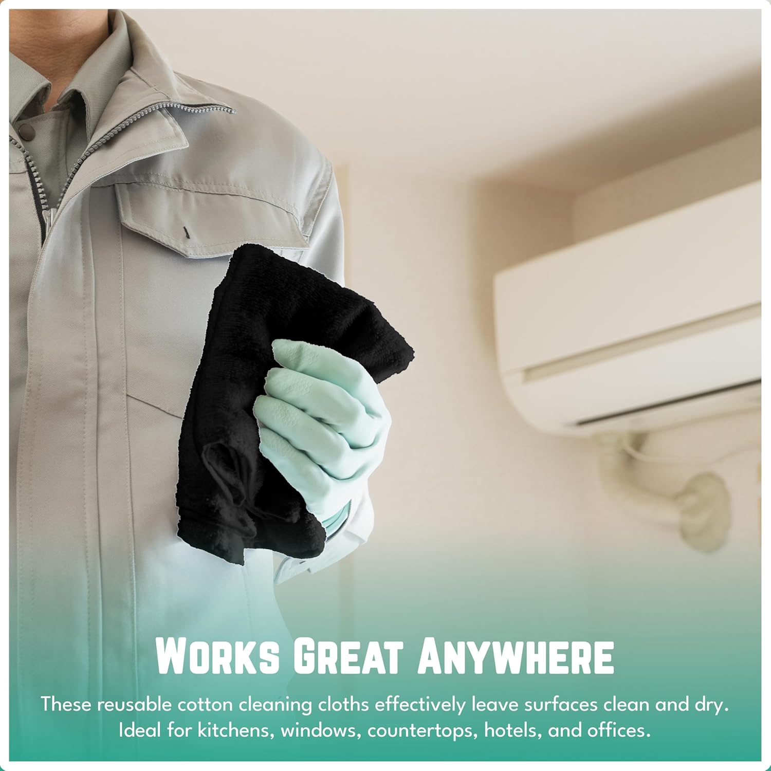 ZUPERIA 100% Cotton Terry Towels Cleaning Cloths, Pack of 50 (12" x 12") Multipurpose, Highly Absorbent, Reusable Cotton Rags, Bar Towels & Cleaning Rags for Everyday Usage (Black)