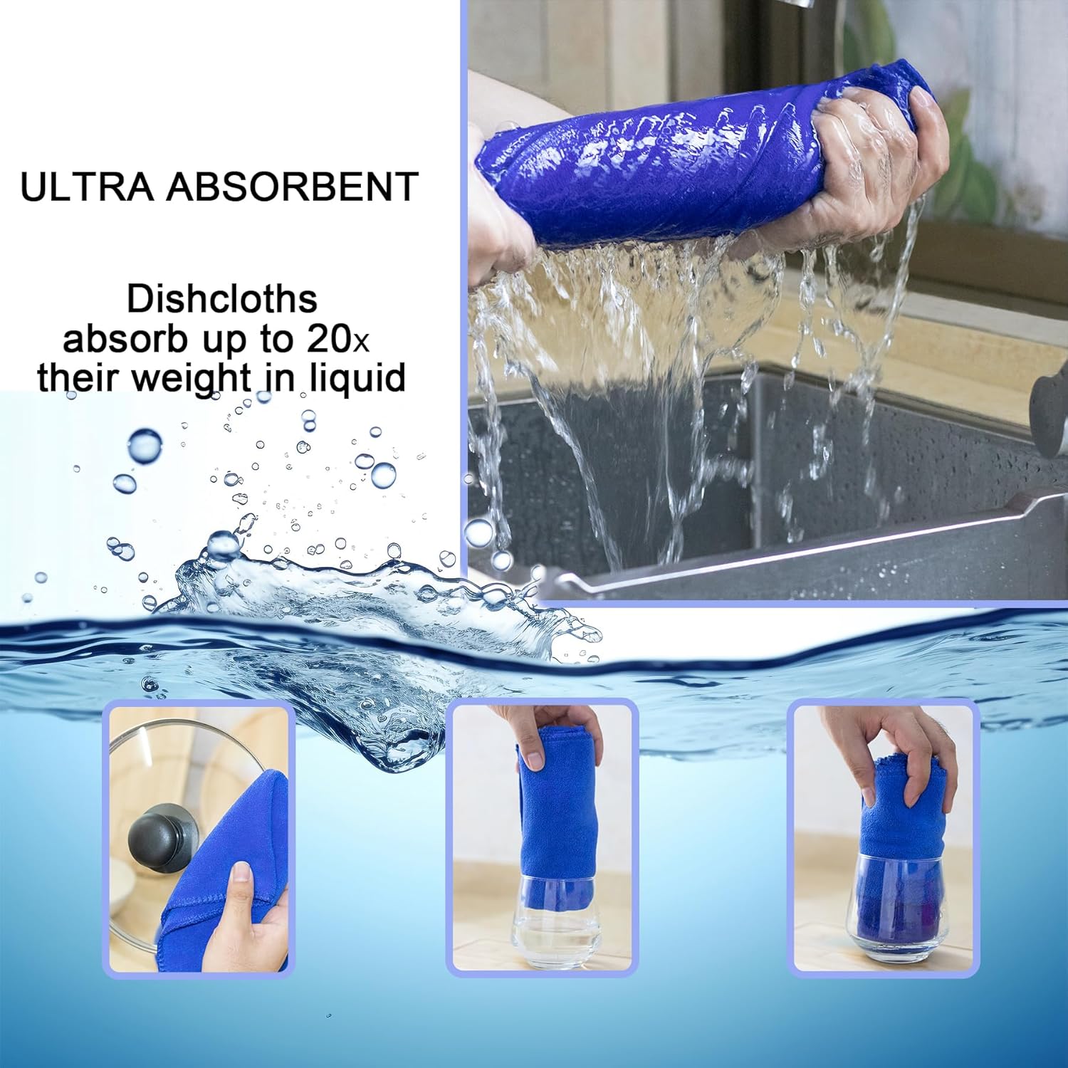 kimteny 13x28 Inches Kitchen Cloth Dish Towels, 400 GSM Premium Dishcloths, Super Absorbent Coral Velvet Microfiber Cleaning Cloths, Fast Drying Rags for Washing Dishes (6 Pack, Blue)