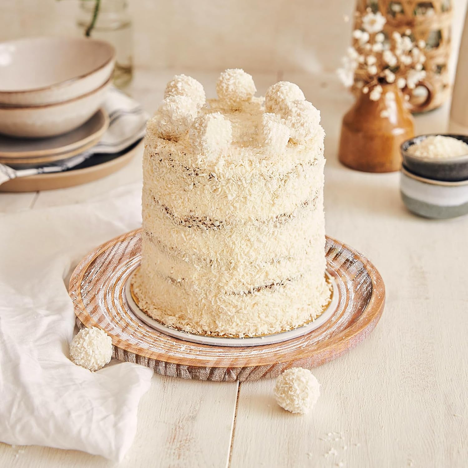 - Unique Design & Rustic Home Decor: These round wood serving Platters have a unique texture, are exquisite texture, they are in white-washed color, a farmhouse shabby chic feeling, which can show your nice taste to others.