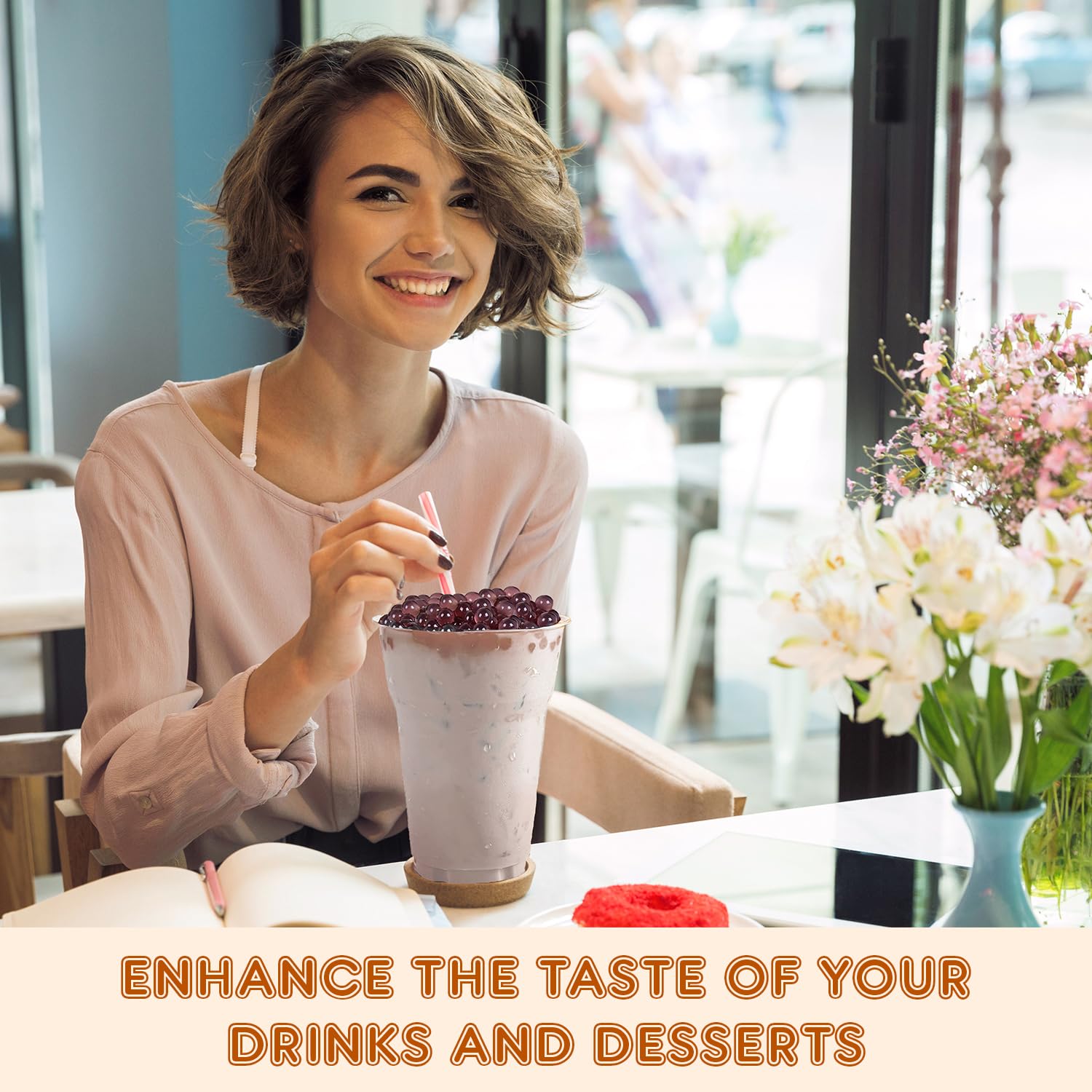 - ๐๐ง๐ซ๐ข๐๐ก๐๐ ๐๐ข๐ญ๐ก ๐๐ฎ๐ข๐๐ฒ ๐๐จ๐จ๐๐ง๐๐ฌ๐ฌ: The fruit boba pearls are filled with natural and organic Blueberry goodness. You get a juicy, mouthful taste of Blueberry with every bite and slurp of your favorite beverages.