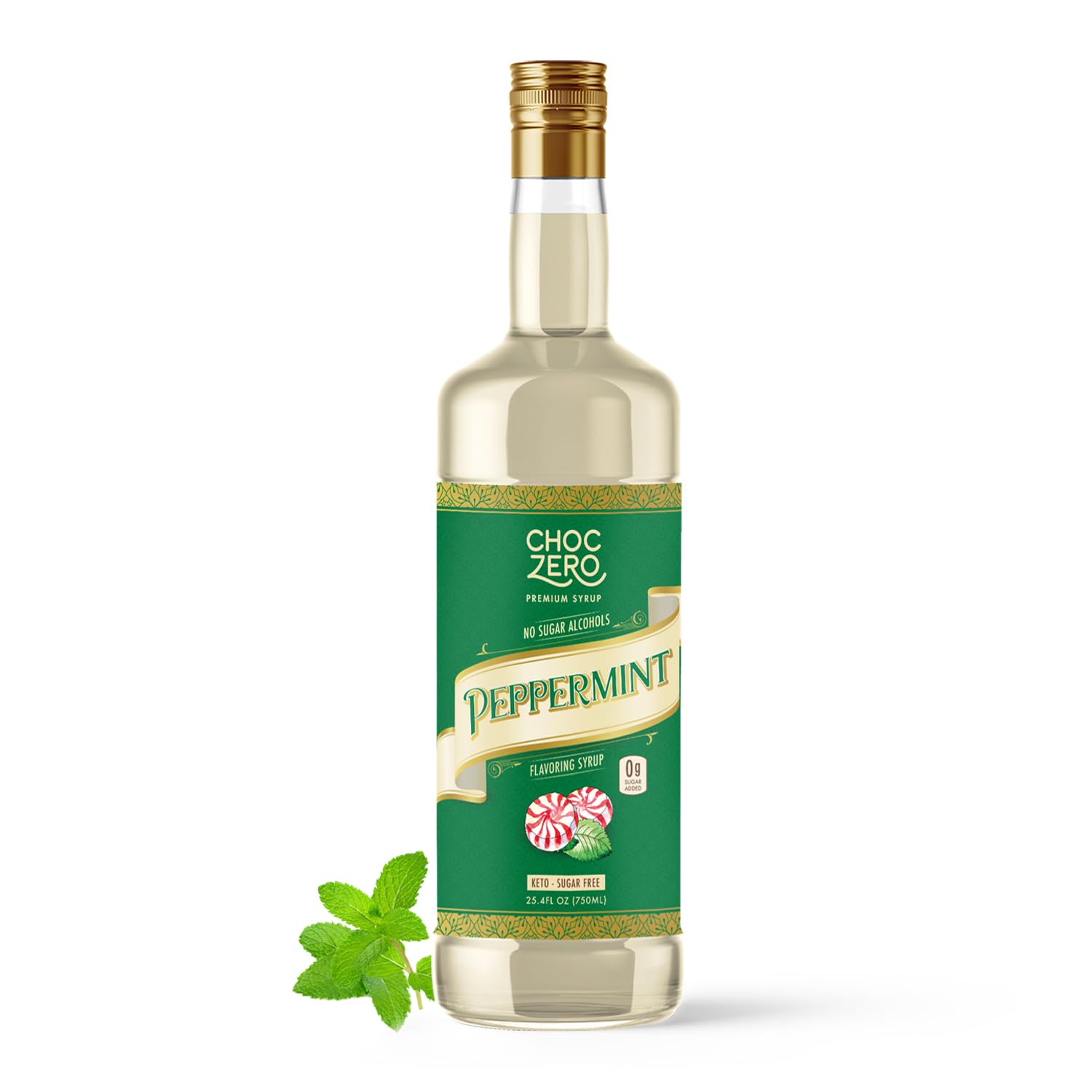 ChocZero Sugar Free Peppermint Syrup for Coffee - Keto Flavoring Syrups - Low Calorie Simple Syrup for Flavored Drinks – 25.4 Fluid Ounces