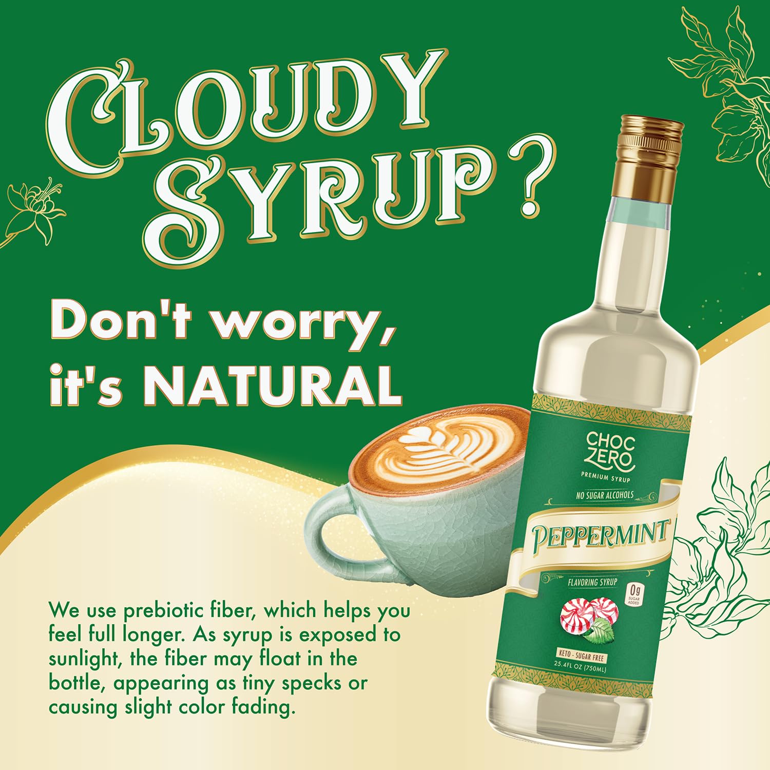 - Our sugar free syrup uniquely includes prebiotic fiber to help you feel full longer. If you see that your syrup is cloudy or has small particles floating, that's our gut healthy fiber. No need to worry, it's supposed to be there