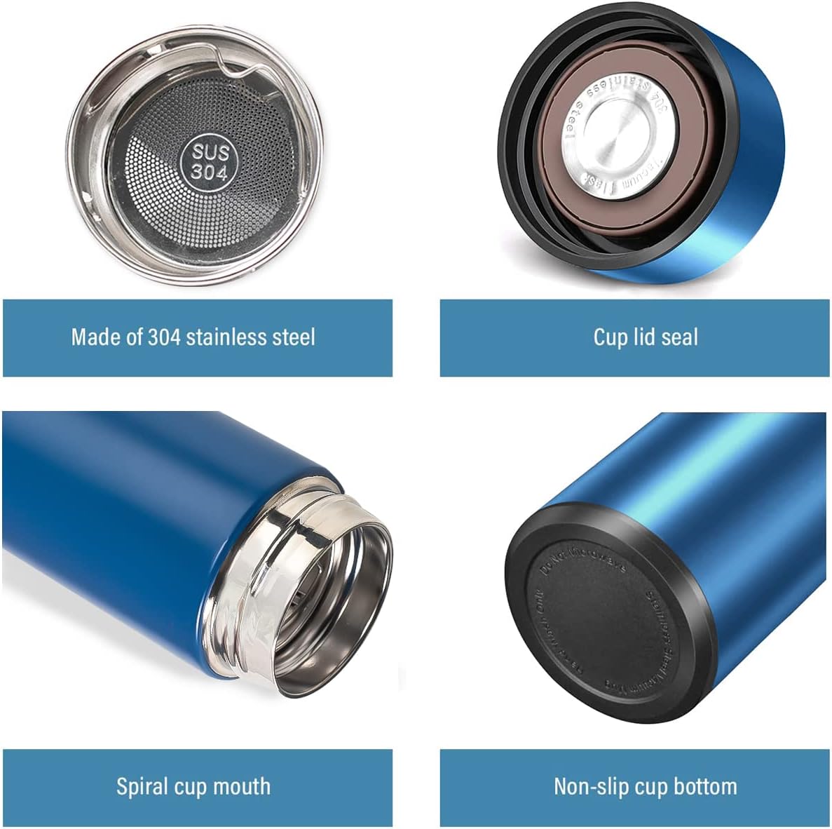 - ๐[{ Unrivaled Quality}] -- Longevity and Sustainability! This 15oz insulated coffee tumbler results from a remarkable partnership 18/8 Stainless Steel. These tea infuser bottles are supremely durable, corrosion-resistant, sweat, leak, spill-proof, food-grade, and eco-friendly. Hand-wash your tumbler to extend its life even further. Reach out in case of a problem, and leave the rest to us!