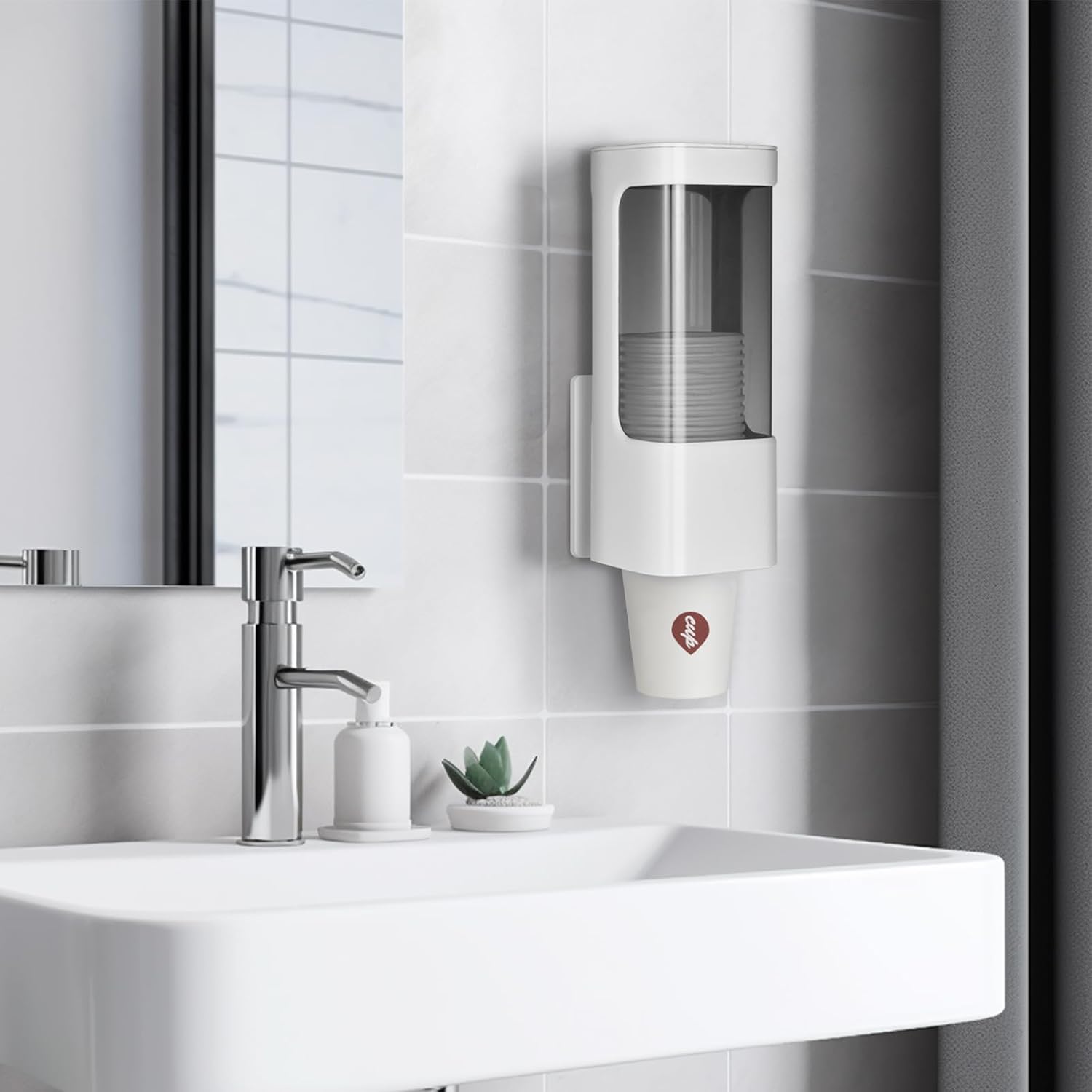 - [Ideal for Home, Office, and Commercial Use]: Perfect for home, office, and commercial settings, this mouthwash cup dispenser holds 35–40 cups. Its sleek design fits any decor, making it a practical and stylish addition to your bathroom, kitchen, or office space, etc.