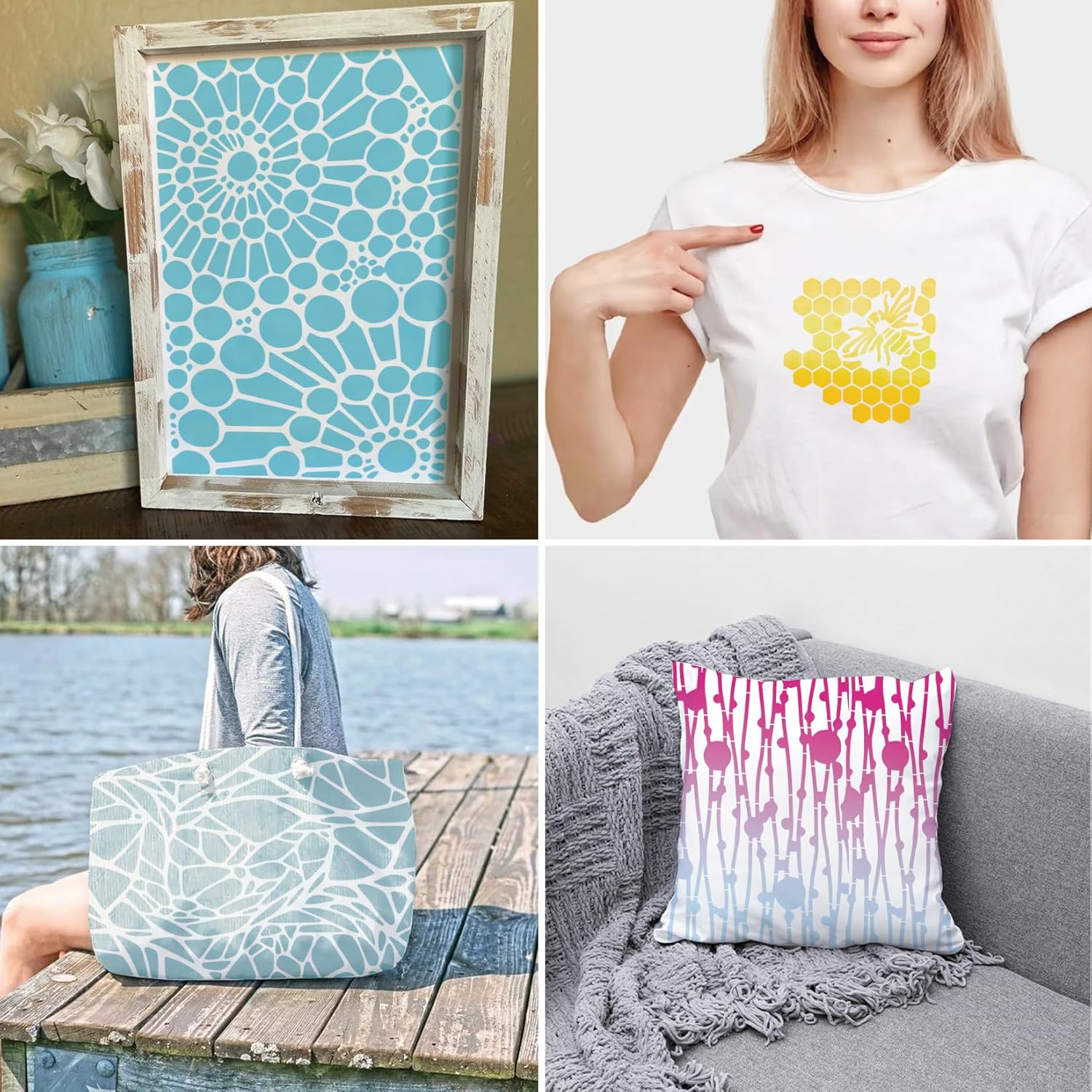 - Wide application: these stencils for craft can be applied for any project, such as boat, car, wood, canvas, fabric, pillow, tile, wall, cabinet, window, door, gift boxes, scrapbooks, greeting cards, bulletin board, and more