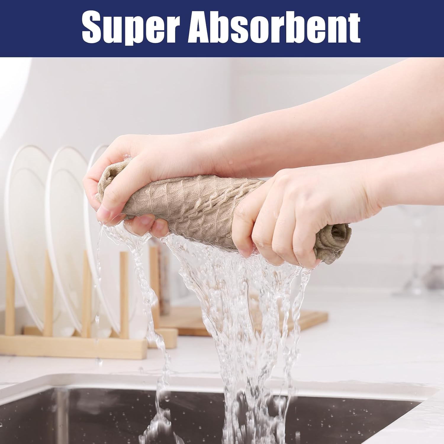 - High Absorbent & Fast Dry: The dish towels with double-sided waffle design, high absorbency, can quickly wipe stains from the surface of the items and fast dry