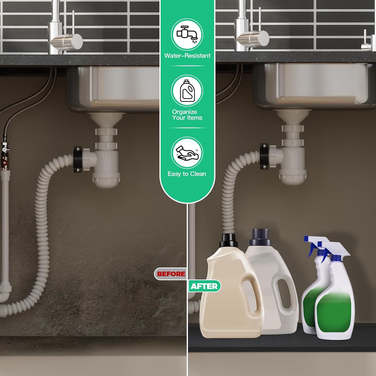 - Compatible Sizes: The TRZZ under sink mat measures 34" x 19" with a 0.6-inch depth to effectively handle water from cabinet leaks; not suitable for cabinets smaller than 34" x 19"