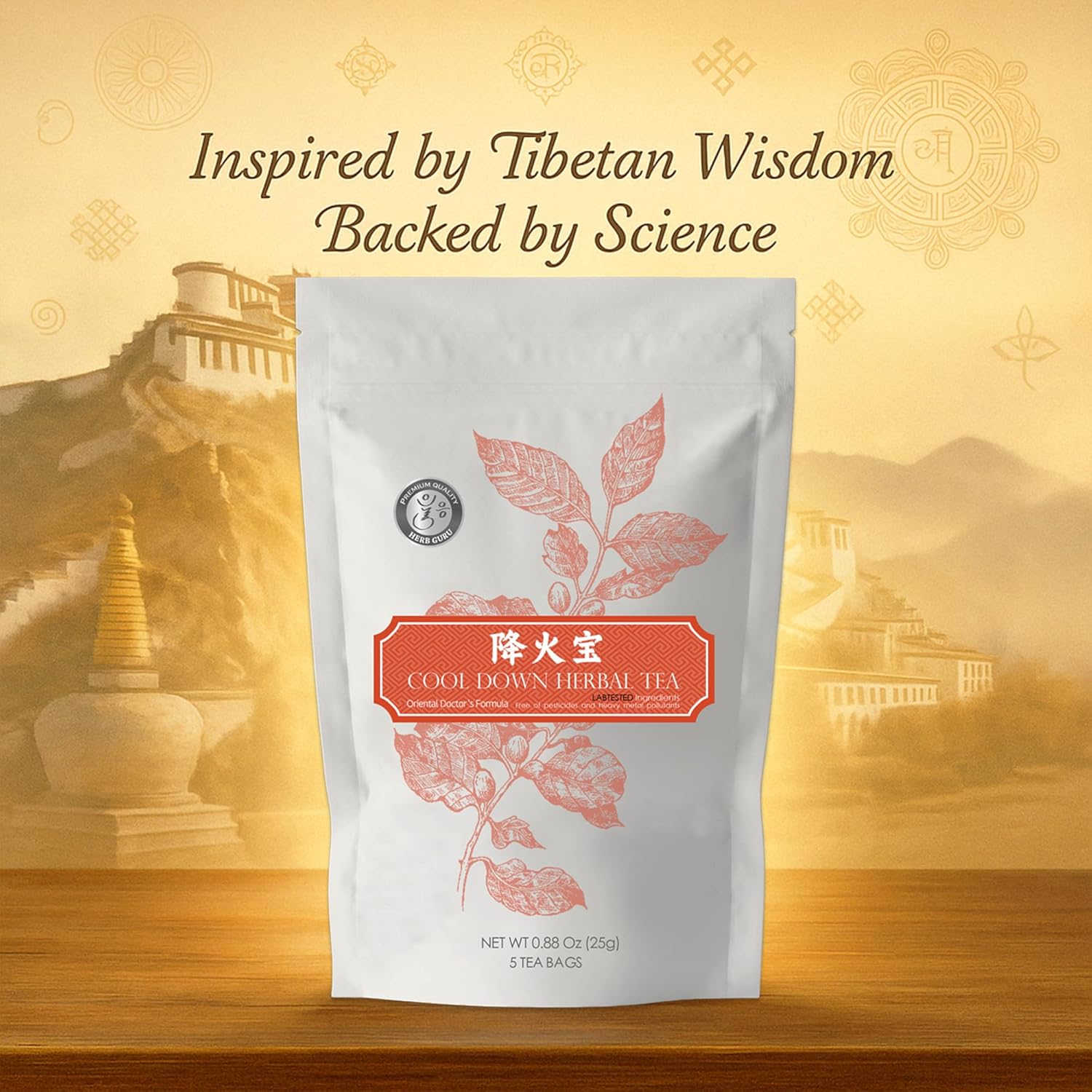Herb Guru Cool Down Herbal Tea Bags – Herbal Heat Relief, Supports Inflammatory Response & Mood Balance with Isatis, Chrysanthemum, Honeysuckle & Licorice Root – Caffeine Free Tea, 0.88 Ounces