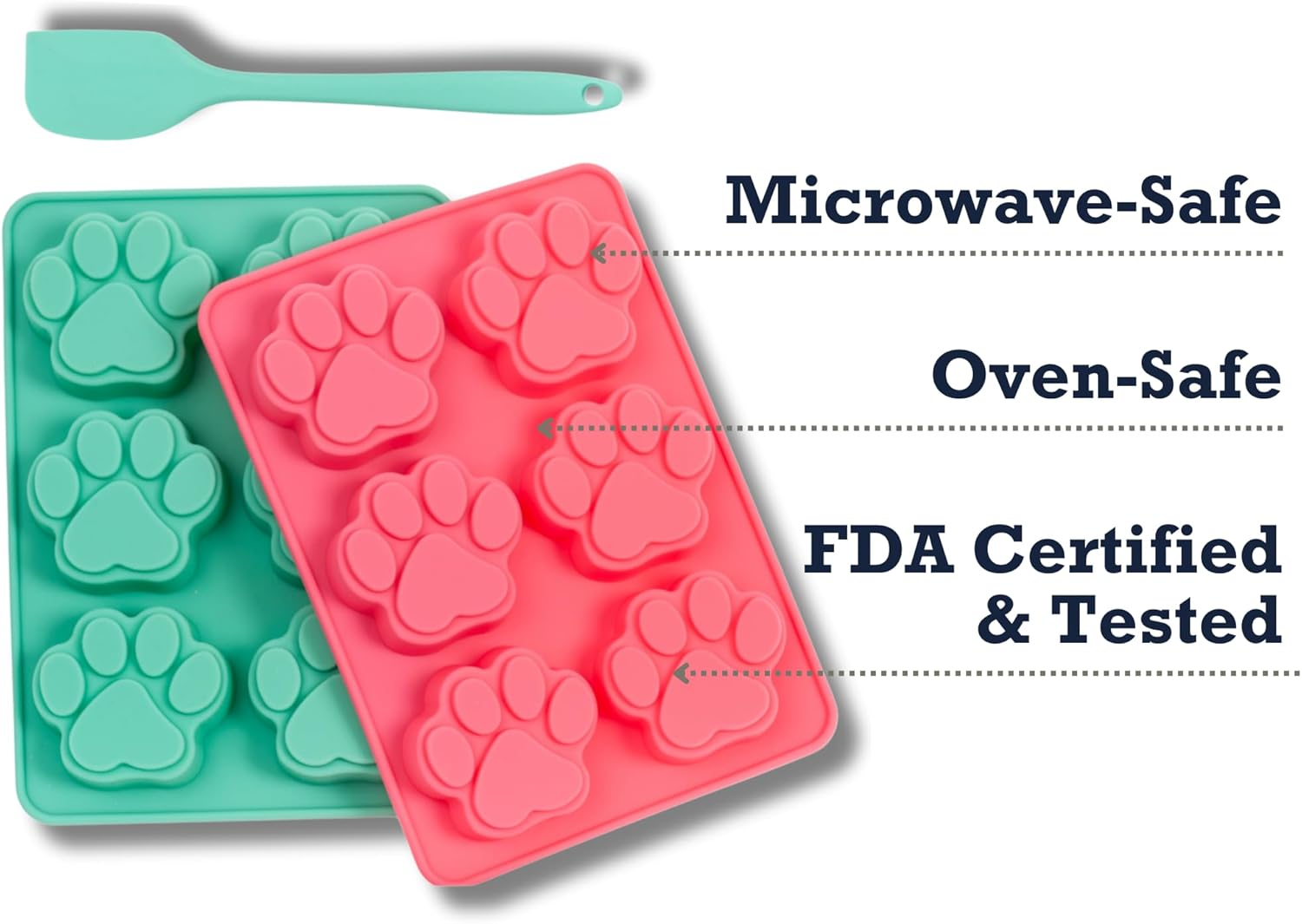 - Mold Dimensions & Uses: Includes 2 silicone trays (6-cavity paw print molds, 2.2x2.0 inches each) and 1 ergonomic spatula for making dog treats, cookies, cakes, candy, and more.