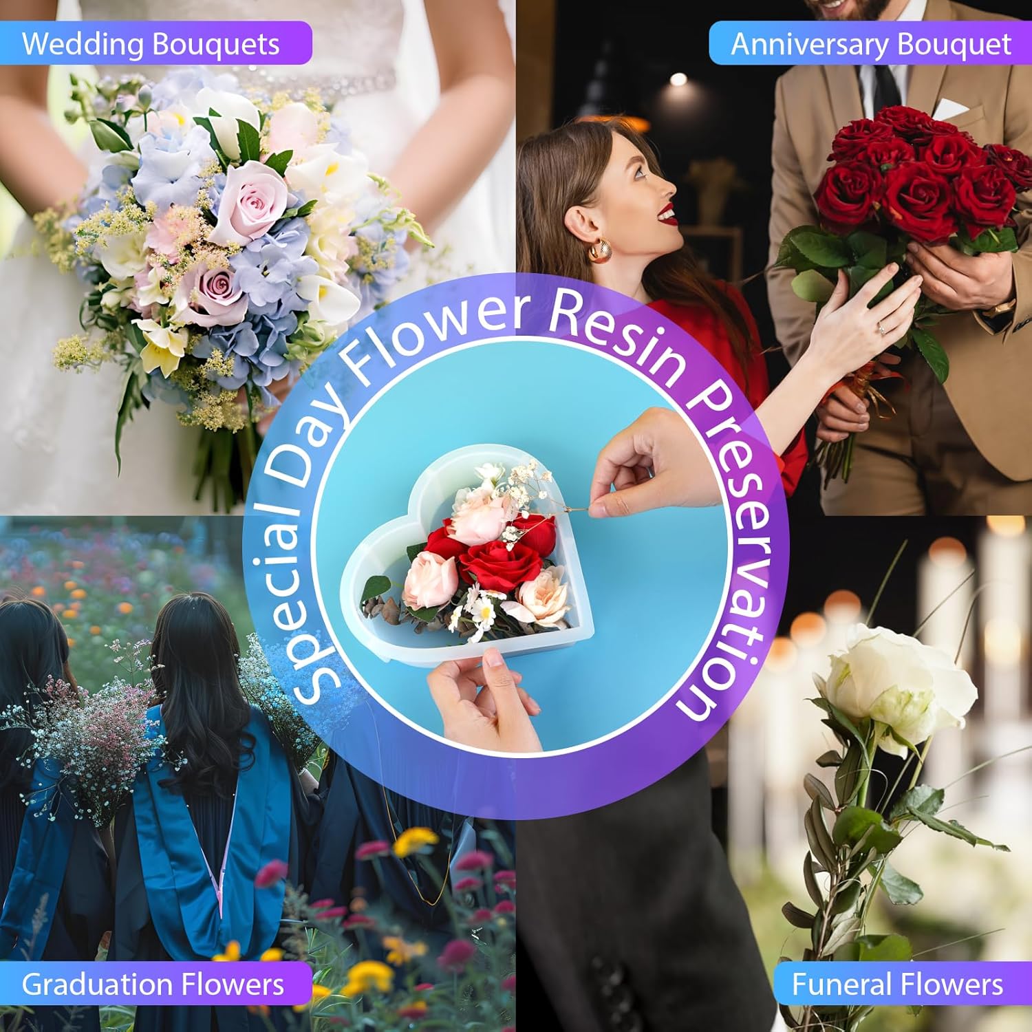 KISREL Large Heart Resin Mold, Heart Shaped Silicone Molds for Epoxy Resin, Large Molds for Flower Preservation, Deep Pour Mold for Furniture Decoration, DIY Wedding Bouquets, Valentine's Day Gifts