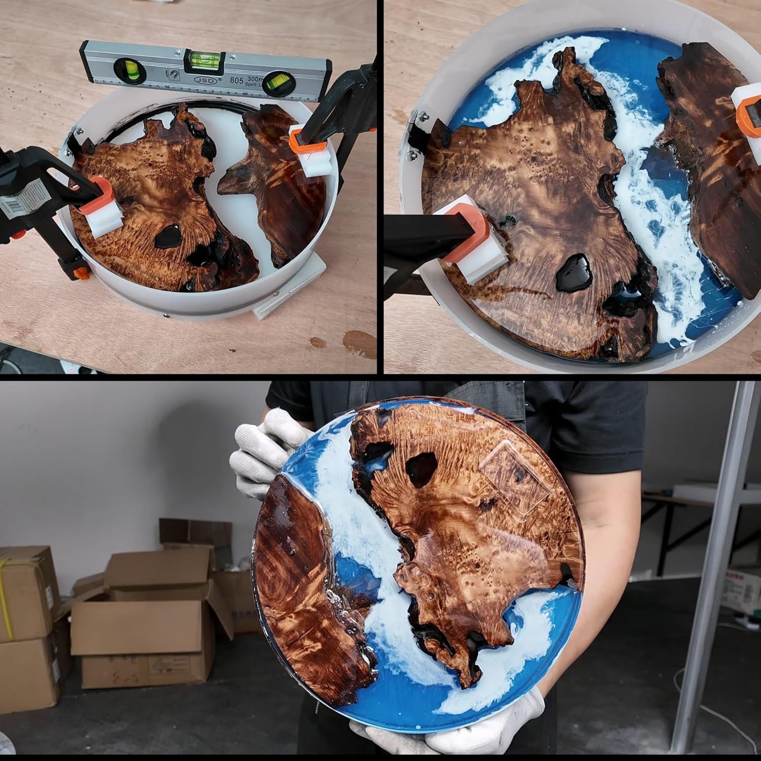 - Easy to demold: Epoxy resin does not stick to high-density materials, and with Kalinta's detachable design, it is easy to demold, so you no longer have to fear demolding. The package includes a rubber hammer for demold, wooden wedges, and multiple small pieces for holding wood in place.