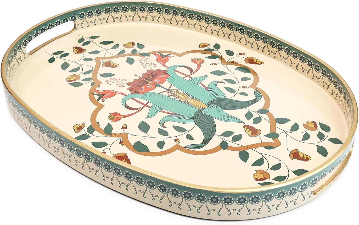 Oval Plastic Serving Tray with Handles, Elegant Decorative Tray for Coffee Table, Ottoman, Living Room, Kitchen, Outdoor Use. 10"*16"*1.4" A